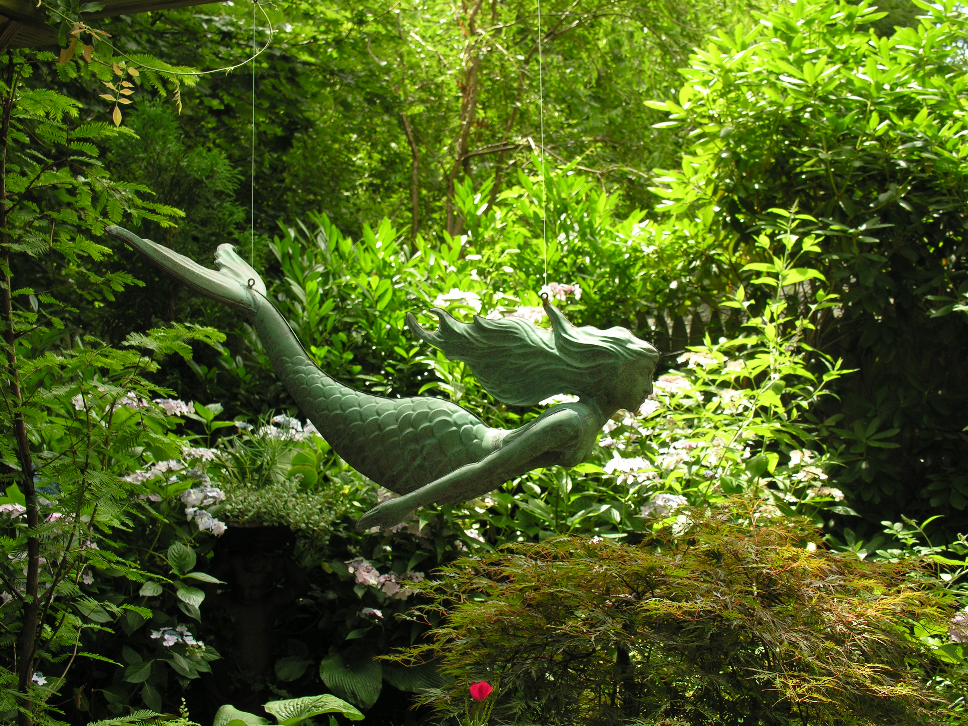 The houses are close together, so the gardens are quite small. Some were delightful – with garden ornaments as interesting as the plants themselves. As for the plantings, I adored the shape of one azalea, which, we were told, is 110 years old, and there were some wonderful trees like the venerable copper beeches in the garden of a B&B.