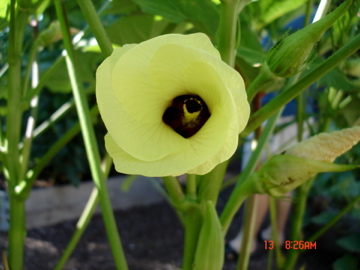 Of course I cannot forget southern food either, so this year, I decided to plant okra. I knew it would grow in the garden, but that is about all I knew. I planted the seeds, diligently watered and kept the okra bed clean. By mid-July there was not too much action, other then tall stalks and lots of green leaves. I thought the heat of July would spur the plants into production, but that was not the case. I did get some okra pods but they did not mature.