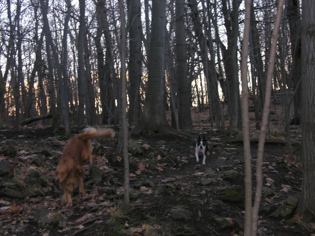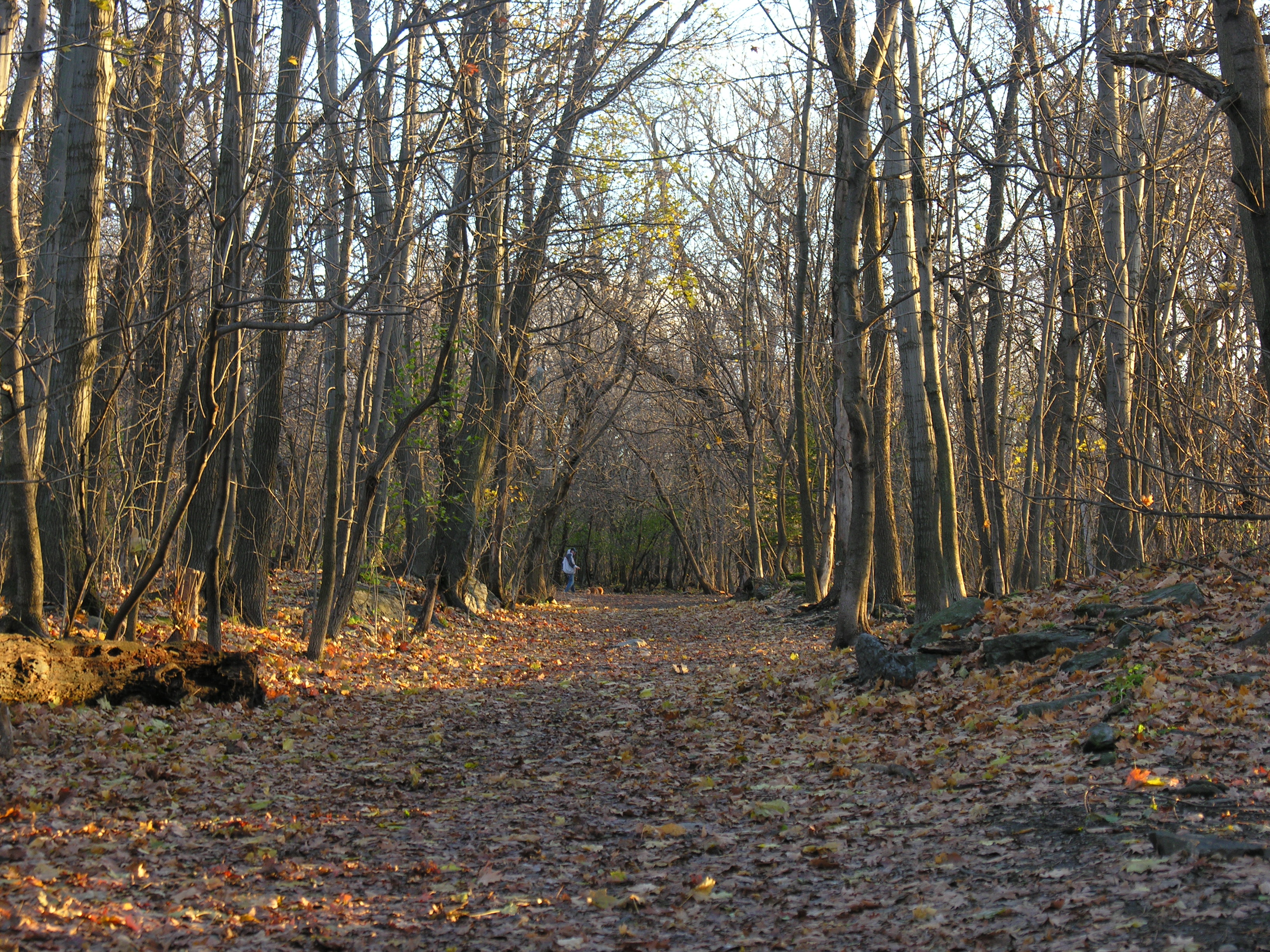 Many people walk their dogs here before and after work. It gives the dogs a chance to blow off steam, and the owners enjoy the wooded paths – even in the weak watery light of November.