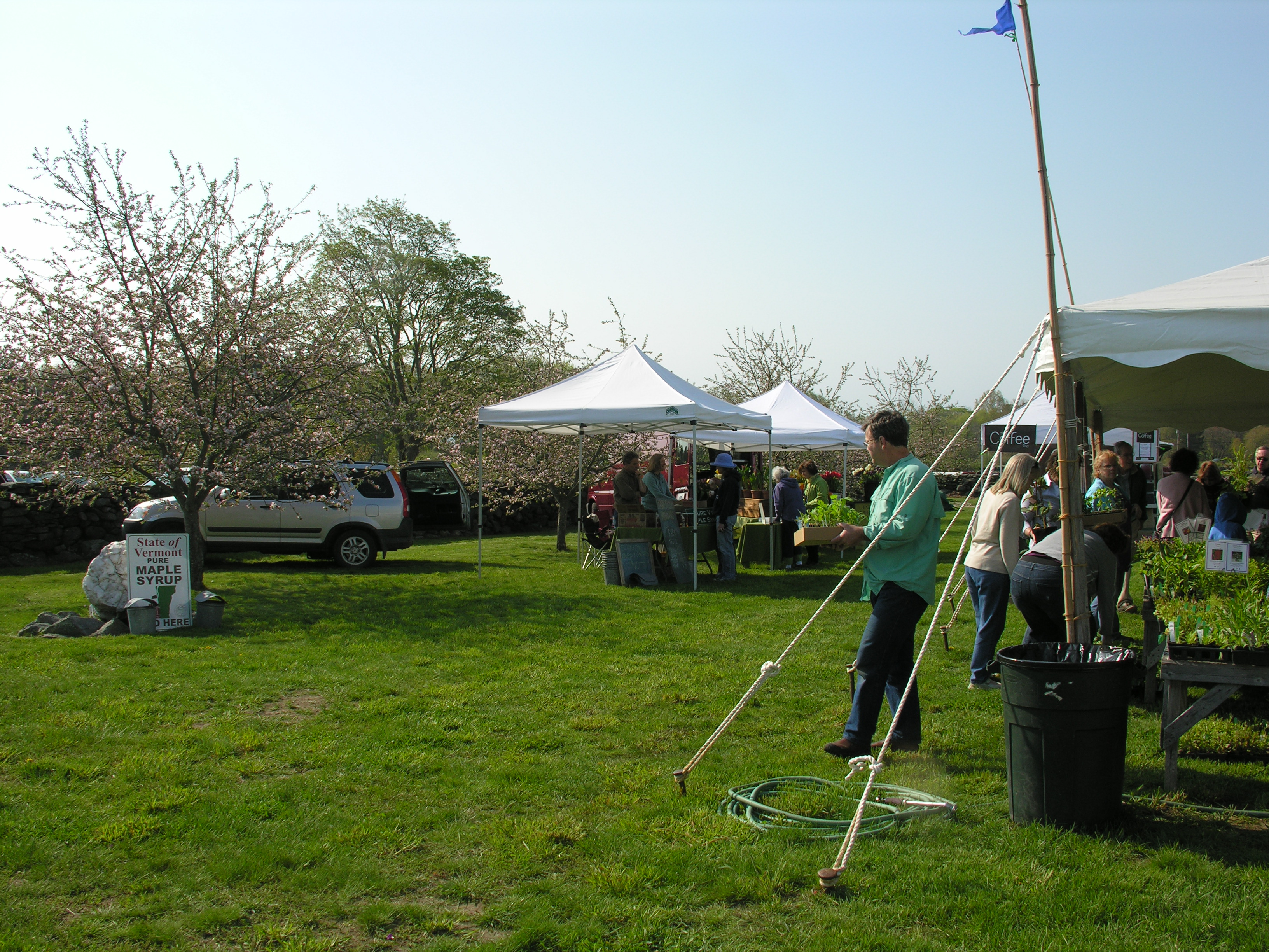 This is the plant sale at historic Casey Farm in Saunderstown. The 300 – acre farm dates back to 1750. They grow organic vegetables here now, and they also sell eggs from their flock of Dominique chickens.