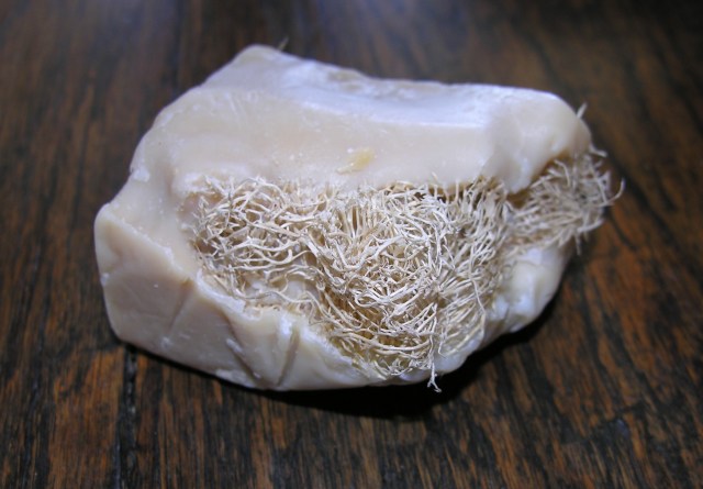 It is fibrous, for sure. The woman who made this soap seems to have shredded the luffa into rather small pieces. I don’t know whether that would make a difference.