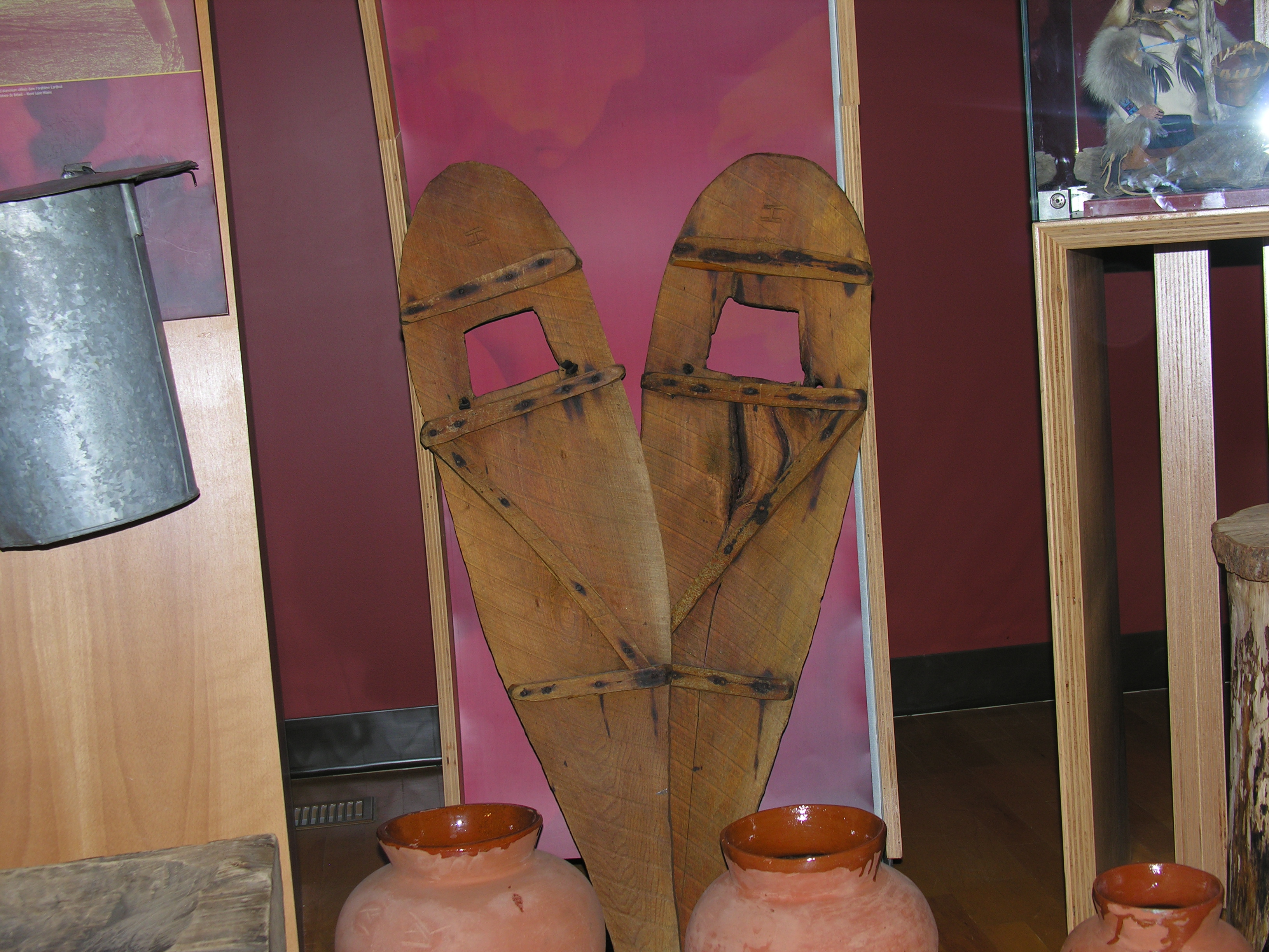 On my recent trip to Quebec, I visited the “Maison Amerindienne,” which features and exhibit on Indigenous maple syrup making. Good syrup requires cold nights and warm days. Those conditions occur in early spring when there is still considerable snow in the woods, so Aboriginal peoples wore snowshoes (just one more of their amazing inventions) to get around in the woods and carry the sap buckets back and forth to the fire. Check out these cool snowshoes, made completely of wood.
