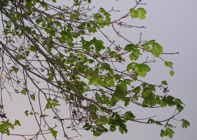 I was surprised one morning about three weeks later, to see new, green leaves emerging on the neighbor’s Norway maple. The Japanese maple nearby still clung to its dead brown leaves, but there were new, red ones coming out on this tree, too. I started looking around at other trees and shrubs, and many of them were also putting out new foliage.
