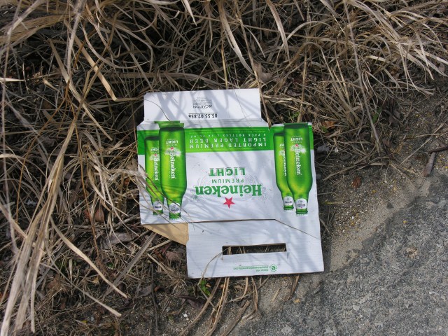 I probably shouldn’t take any satisfaction in the fact that our local litterbugs seem to be working toward early deaths from alcoholism, obesity and lung cancer.