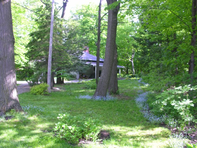Another house, made more charming by the forget-me-nots growing with the trees.