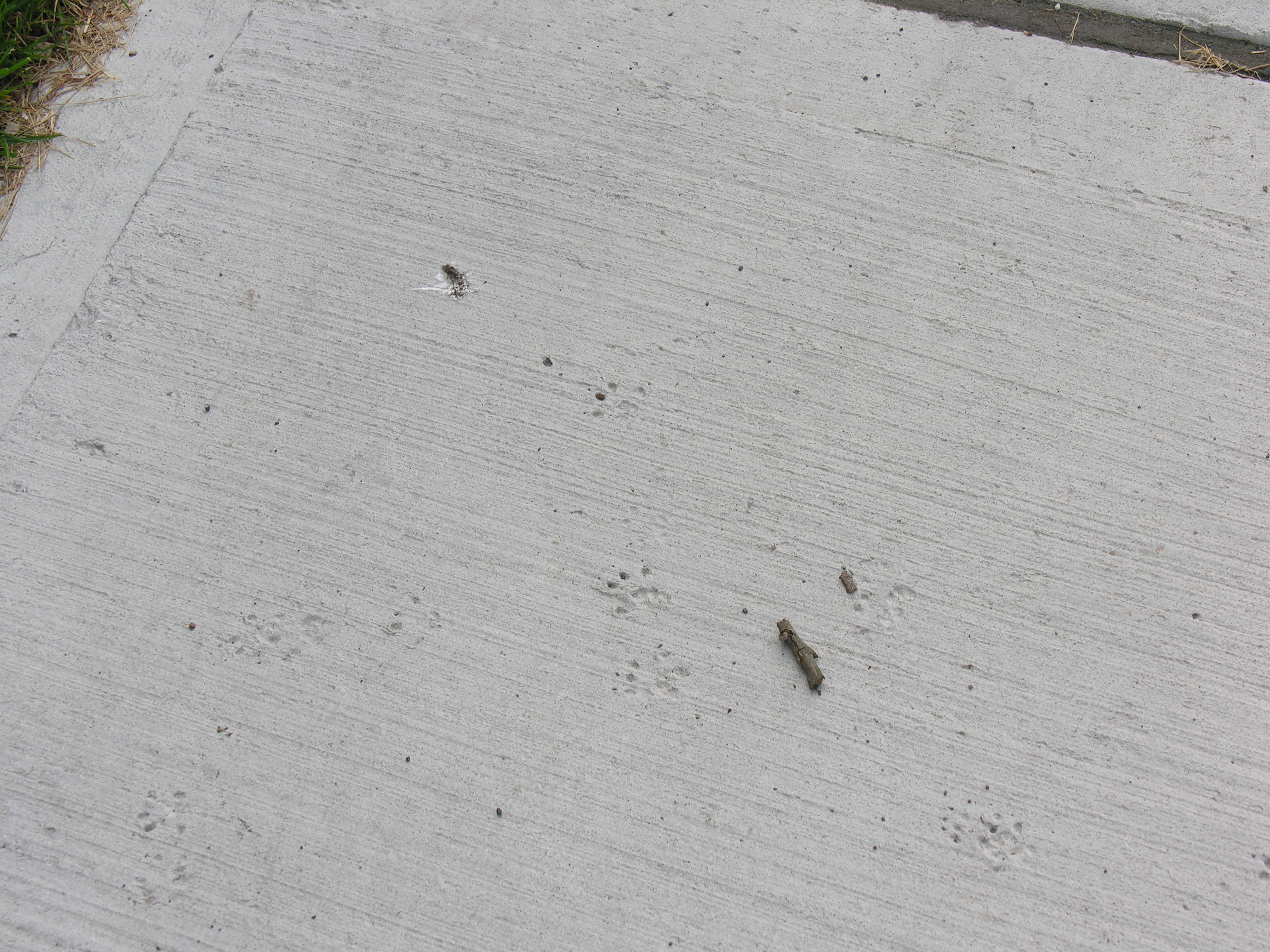 They had recently built new sidewalks, but a squirrel had managed to make its mark. Right on, my rodent friend. Immortality is yours.