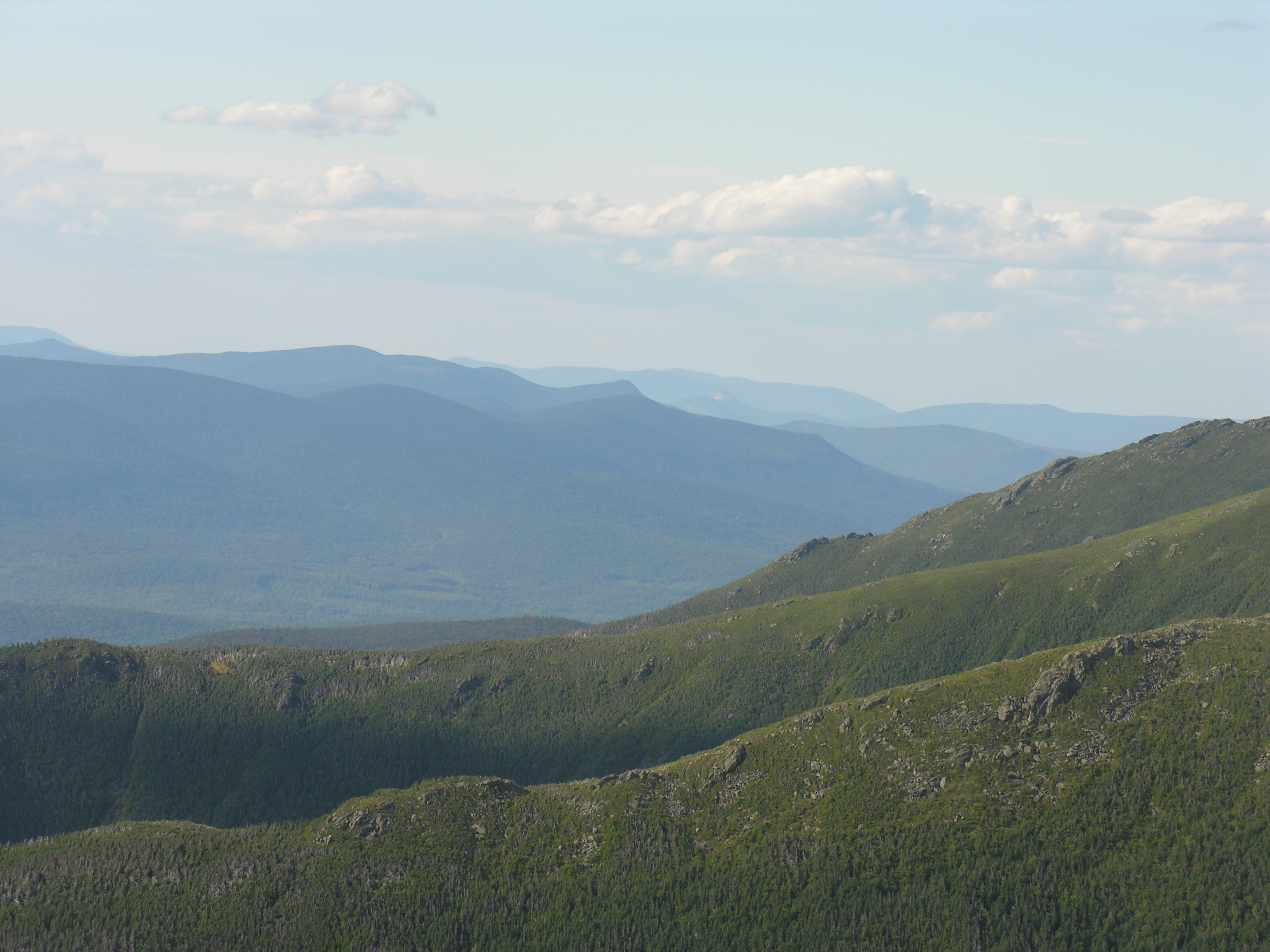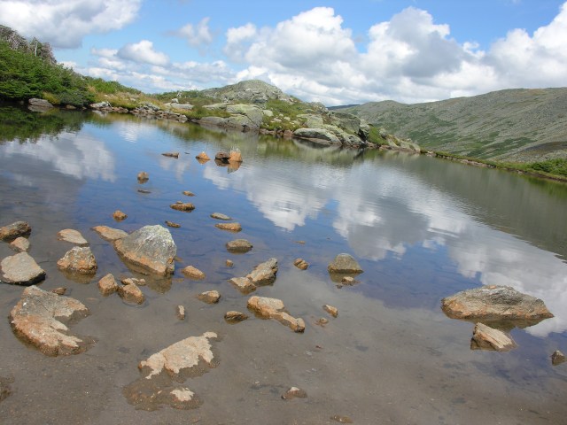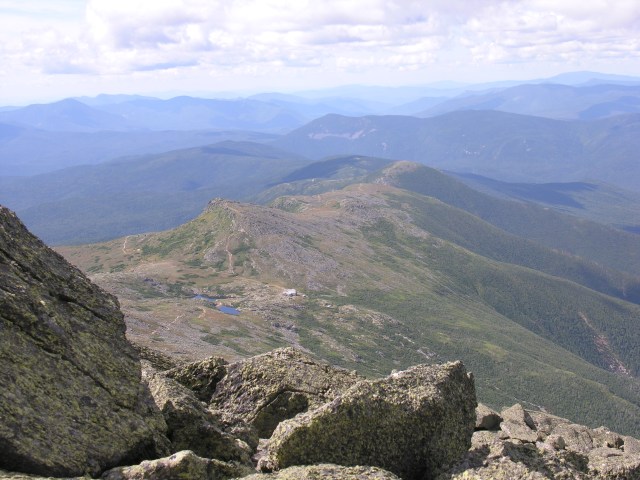 I have just spent a few days in the White Mountains of New Hampshire. A friend and I backpacked to two Appalachian Mountain Club huts: Lakes of the Clouds and Mizpah. In the photo above, you can see the Lakes of the Clouds hut far down the mountain. You have to descend the highest part of Mt. Washington to get there.