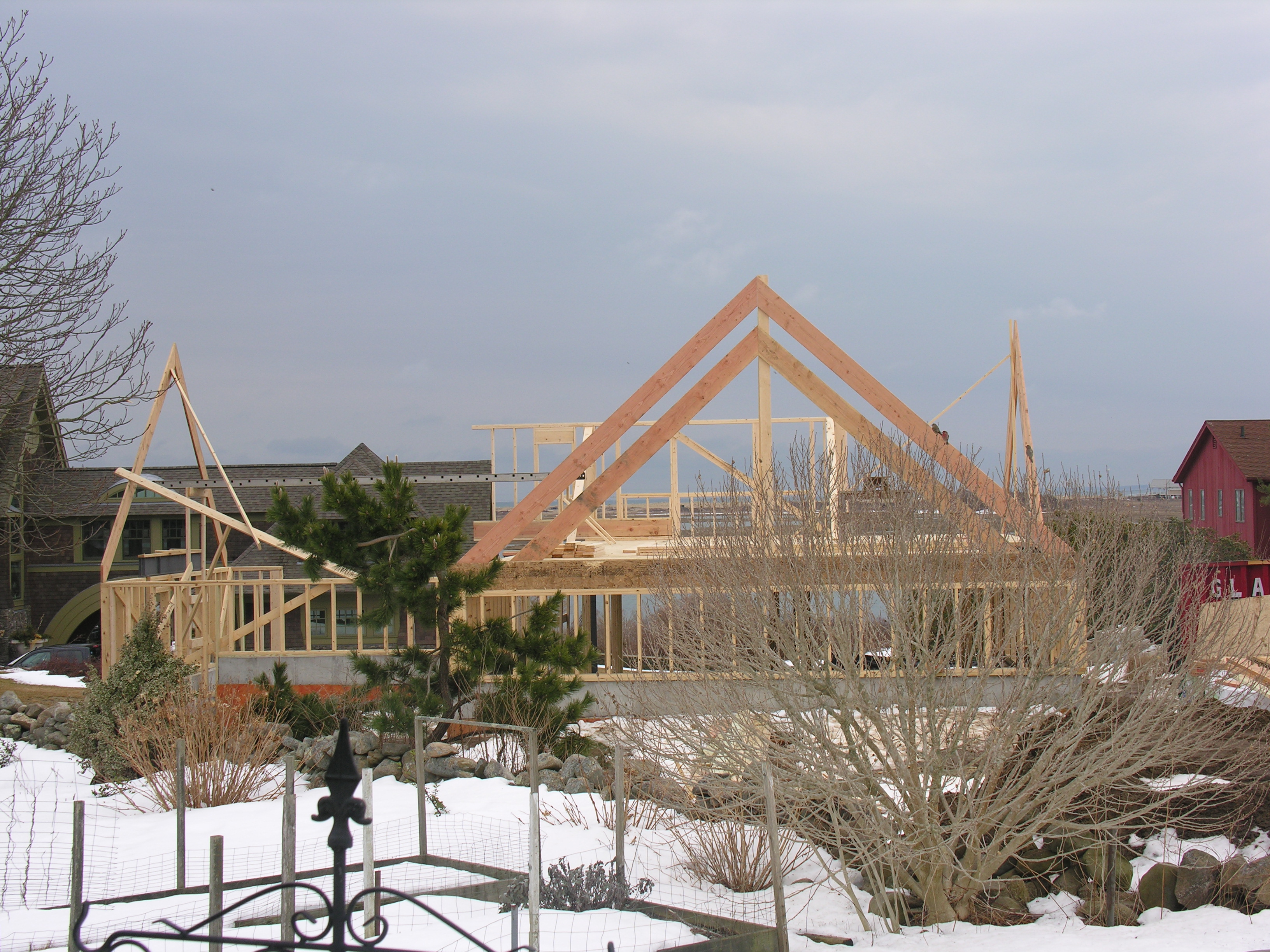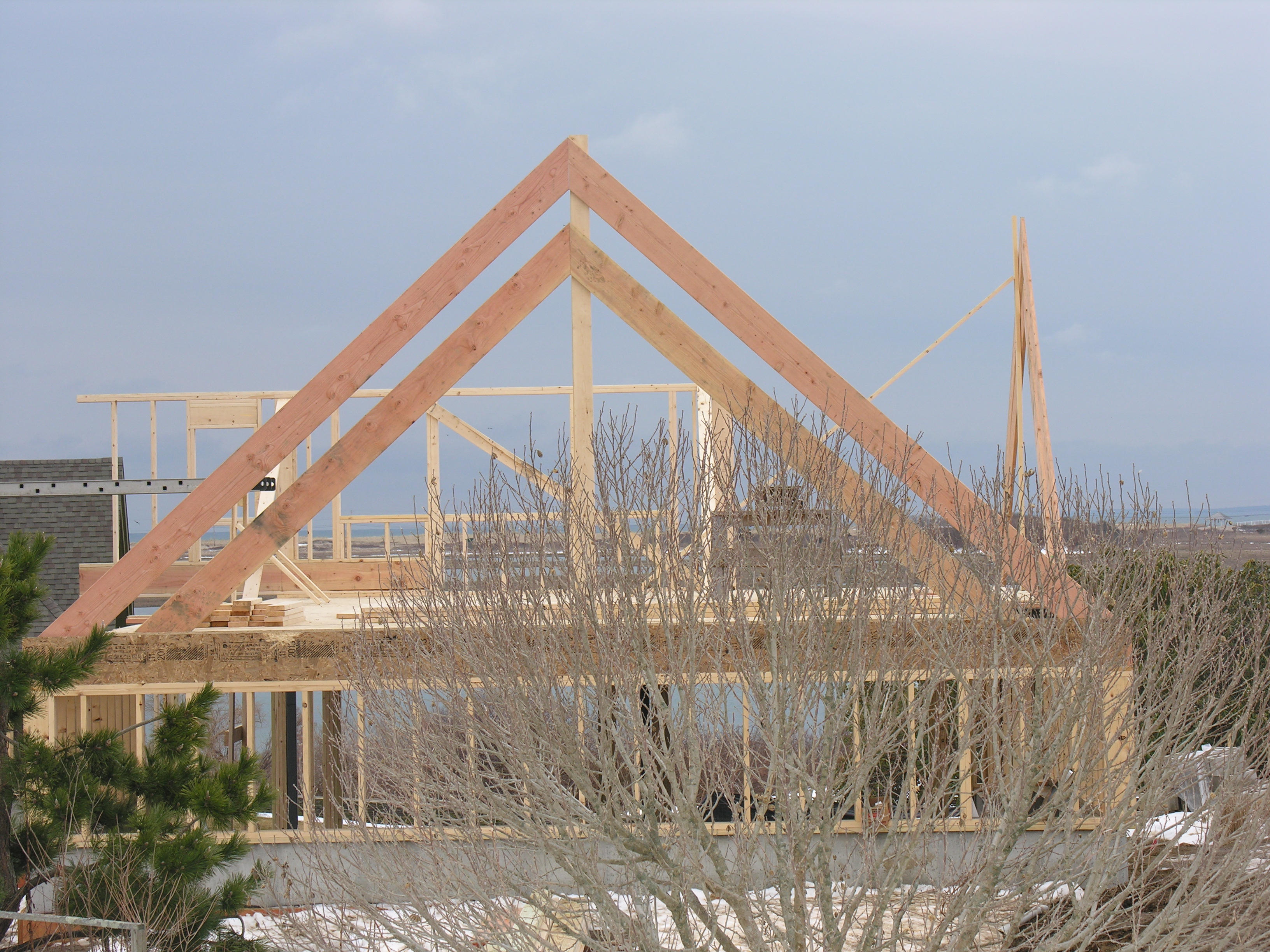 It looks like this will be more than a garage, but rather a carriage house. I can relate to this as my carriage house has 5 British cars in it at the moment, with room for three more. I must admit, aside from the location, it does look like an interesting project. (If it doesn’t blow over first. look like the carpenter’s are living dangerously).