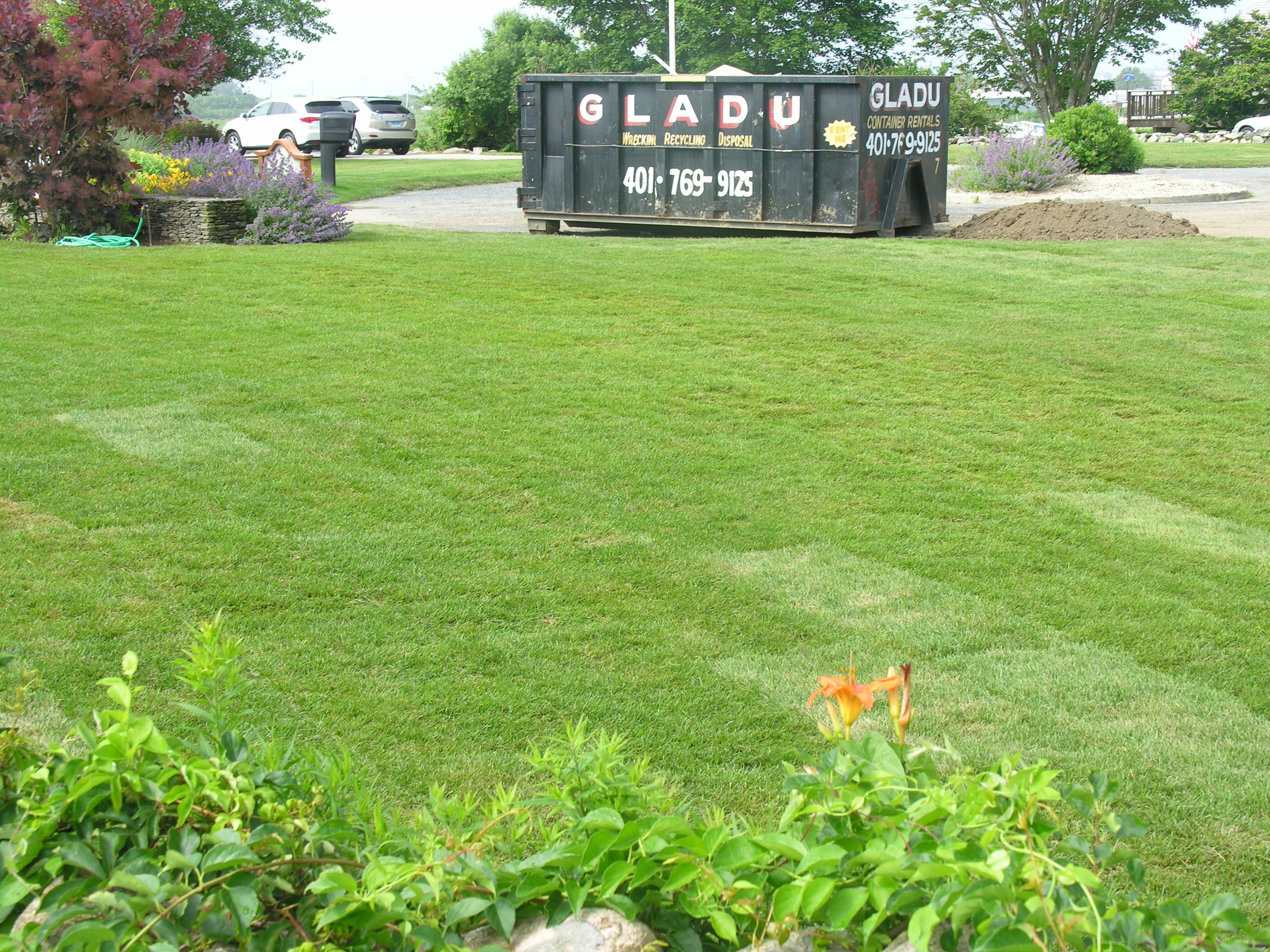 Over the last six months, we have gone from overlooking a wildflower meadow and the ocean to a sea of mud, a huge dumpster and a porta john, and now, turf grass. Boring old turf grass which he will most certainly spray with toxic chemicals. He already does this on the rest of his property – his property right on the salt pond. But that’s just the swell kind of guy he is.