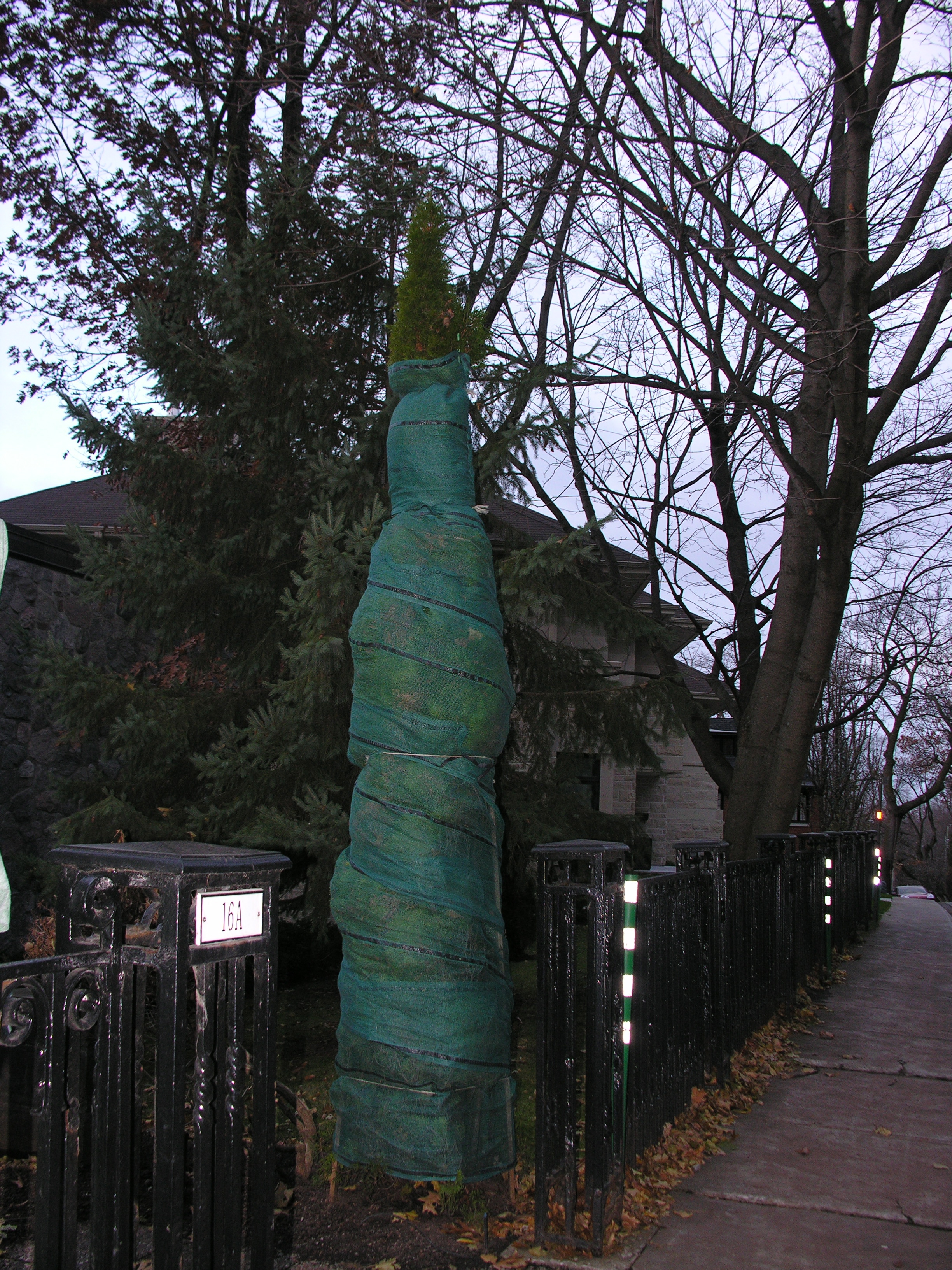 This house was already preparing for Christmas, in pretentious fashion, I thought. But maybe that’s just me. Those decorations were a spot of green in an otherwise gray landscape, and I was glad to see them.