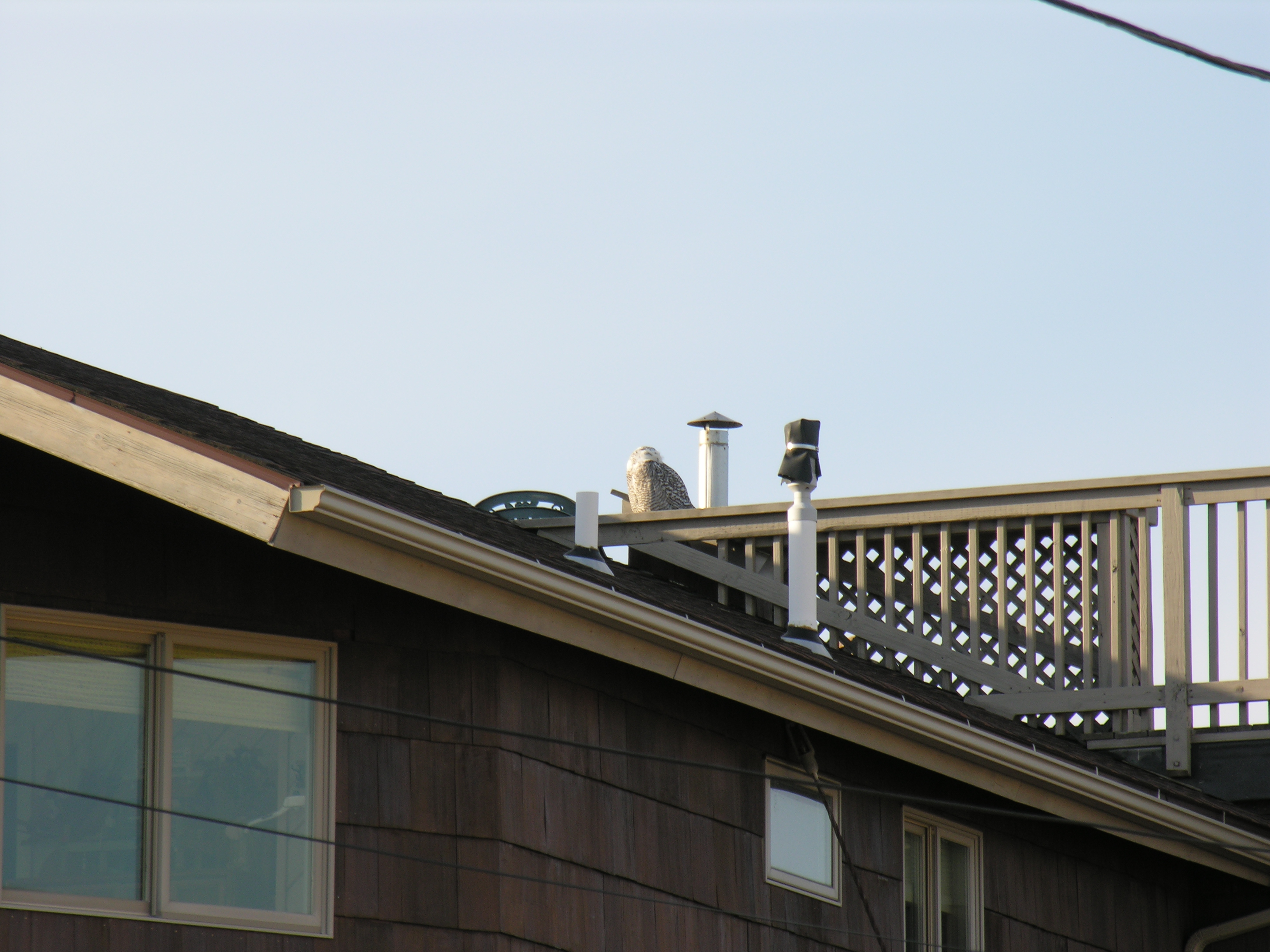 This one was perched high on a roof. It was hard to get a decent shot of it. Still awesome, though, that they’ve come all the way down from the Canadian Arctic, and that we have a chance to see them here.