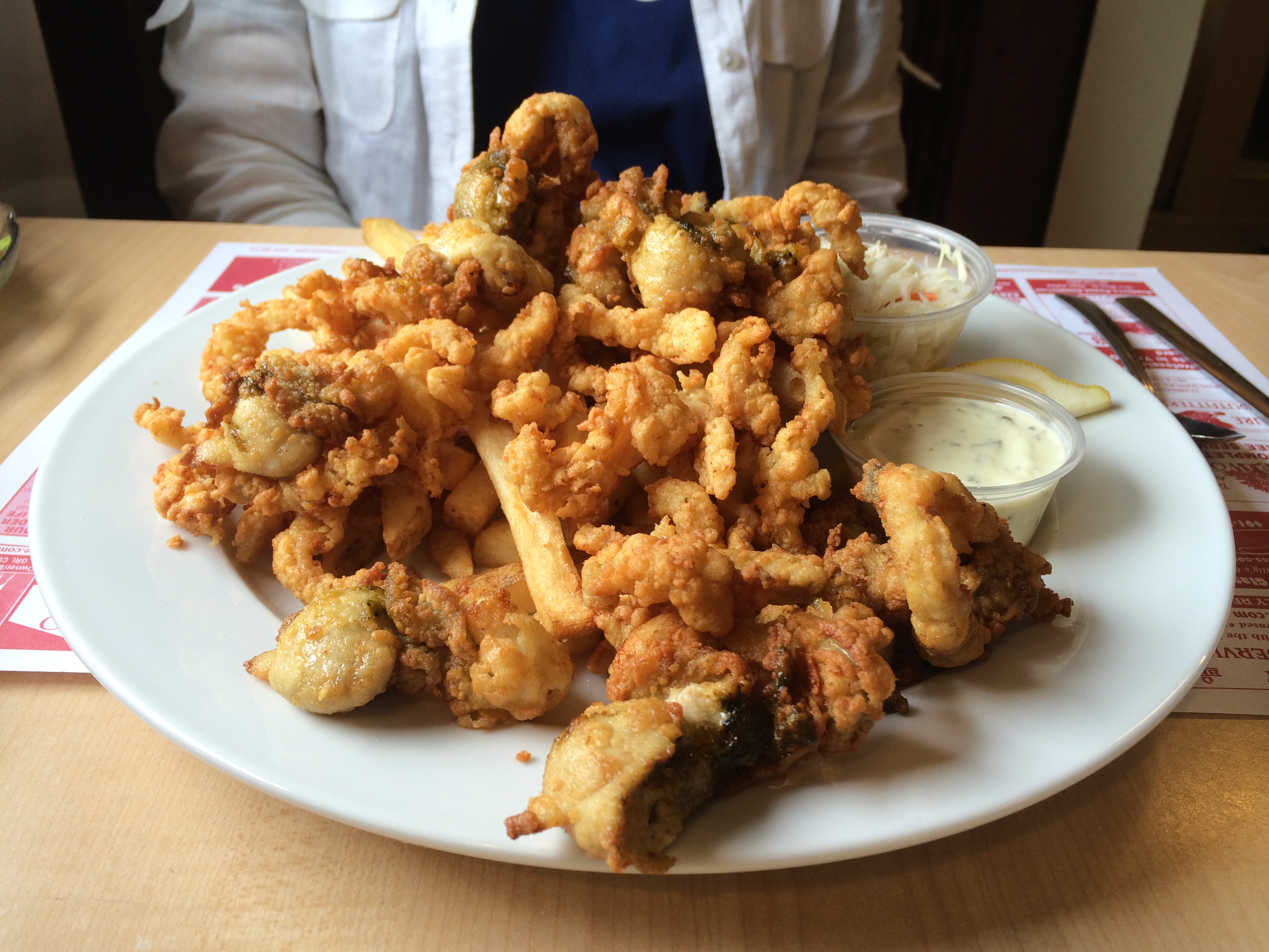 First, some iconic summer treats, which we get to enjoy year-round here in RI: the lobster roll and fried clam bellies. Rhode Islanders are persnickety about their seafood. The lobster roll must be overflowing, with not too much mayo.
