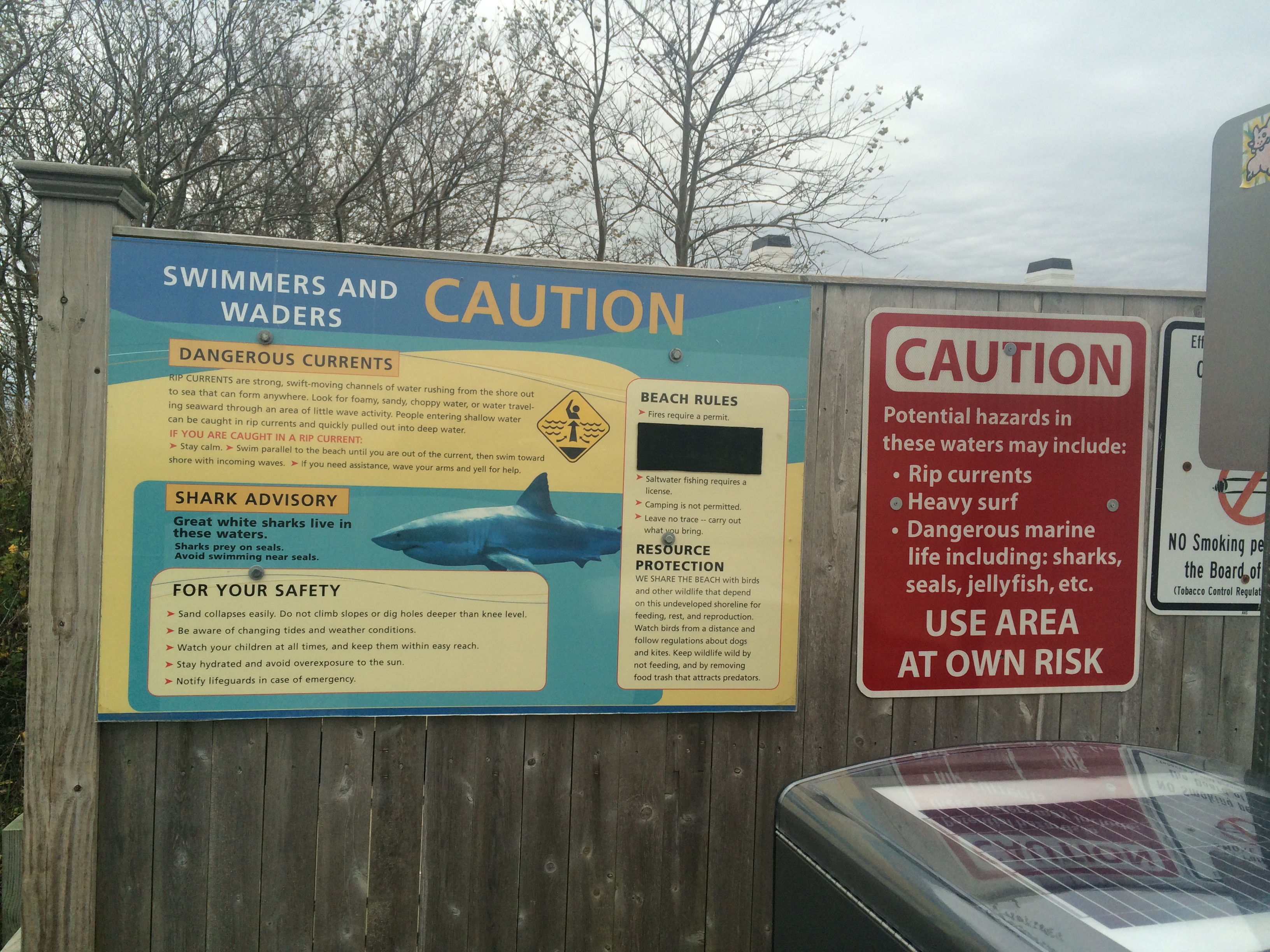 It is also home to a sizable gray seal population, and the seals have in turn attracted great white sharks. Between the sharks and the seals and the currents, it is a place to walk and sit. Just don’t go in the water. More warning signs await you as you descend the stairs to the beach. They aren’t taking any chances.