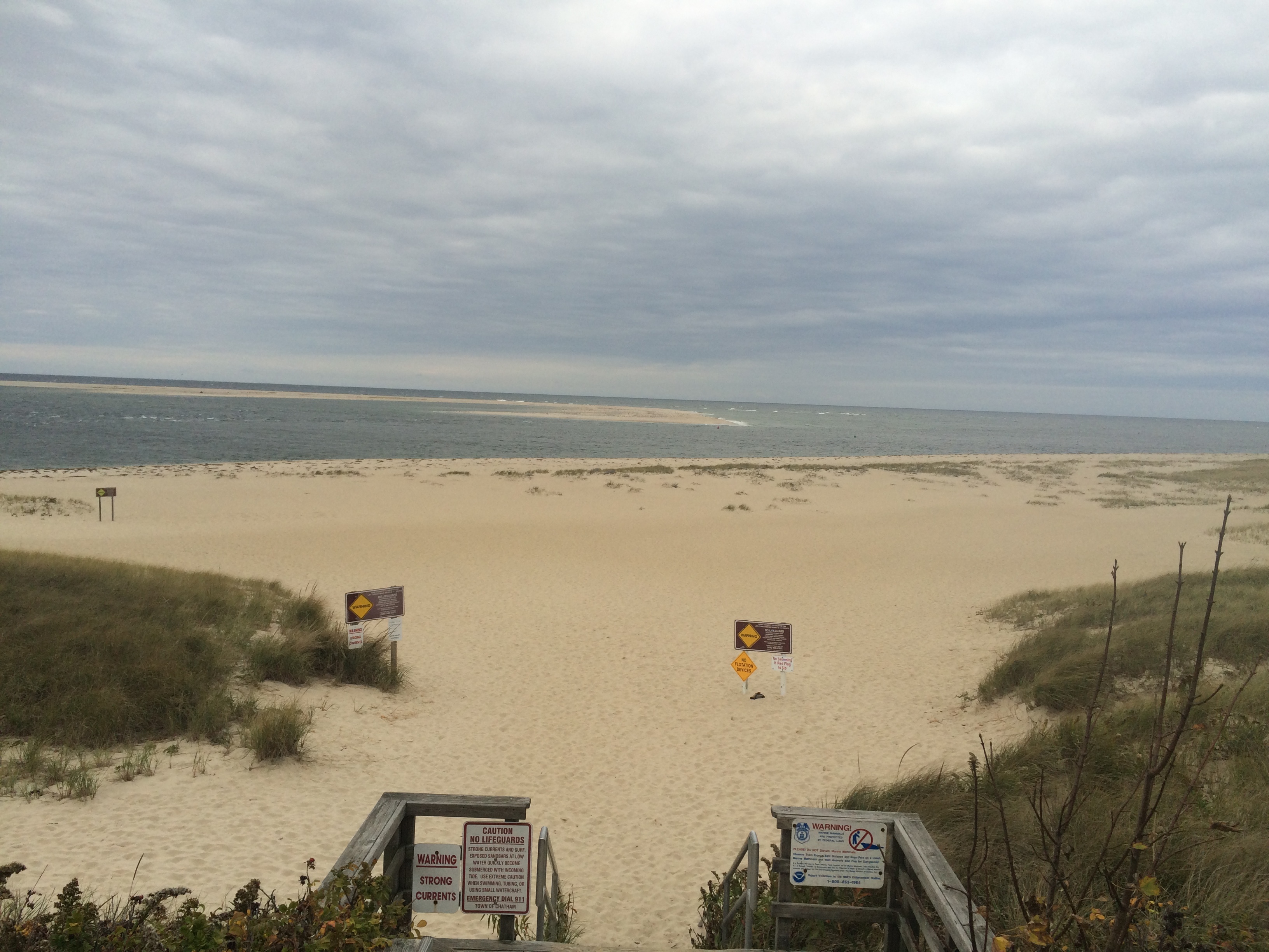 Look at all those warnings. It is NOT a good idea to swim at the Monomoy National Wildlife Refuge in Chatham, on Cape Cod, MA. This beautiful, wild place is a stunning barrier beach; constantly shifting and changing, with new sand spits and cuts being formed, then lost, then appearing again.