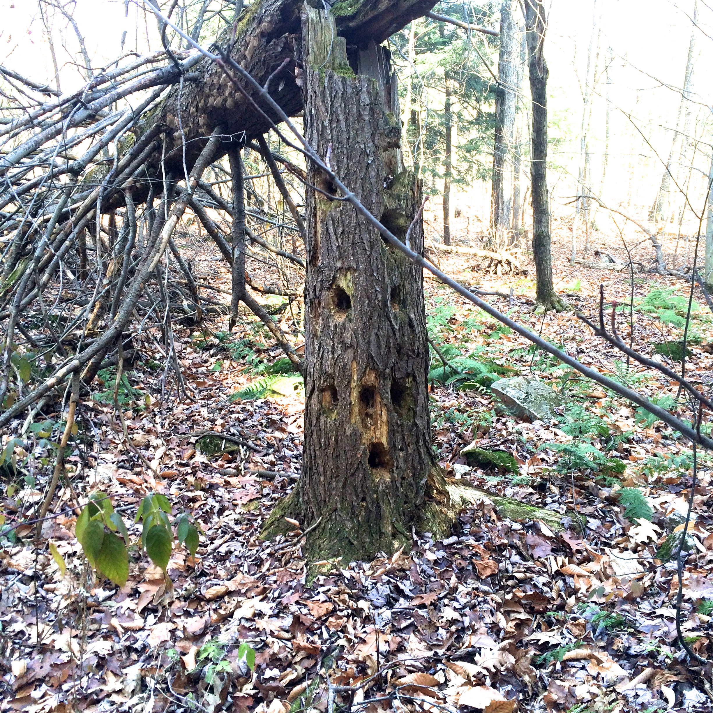 IMG_3020Here’s another example of how dying trees benefit wildlife. This cedar was riddled with oblong pileated woodpecker holes. Pileateds are the biggest woodpeckers in the area by far, and my sister has them coming to her peanut and sweet feeders where they hammer away at the food.