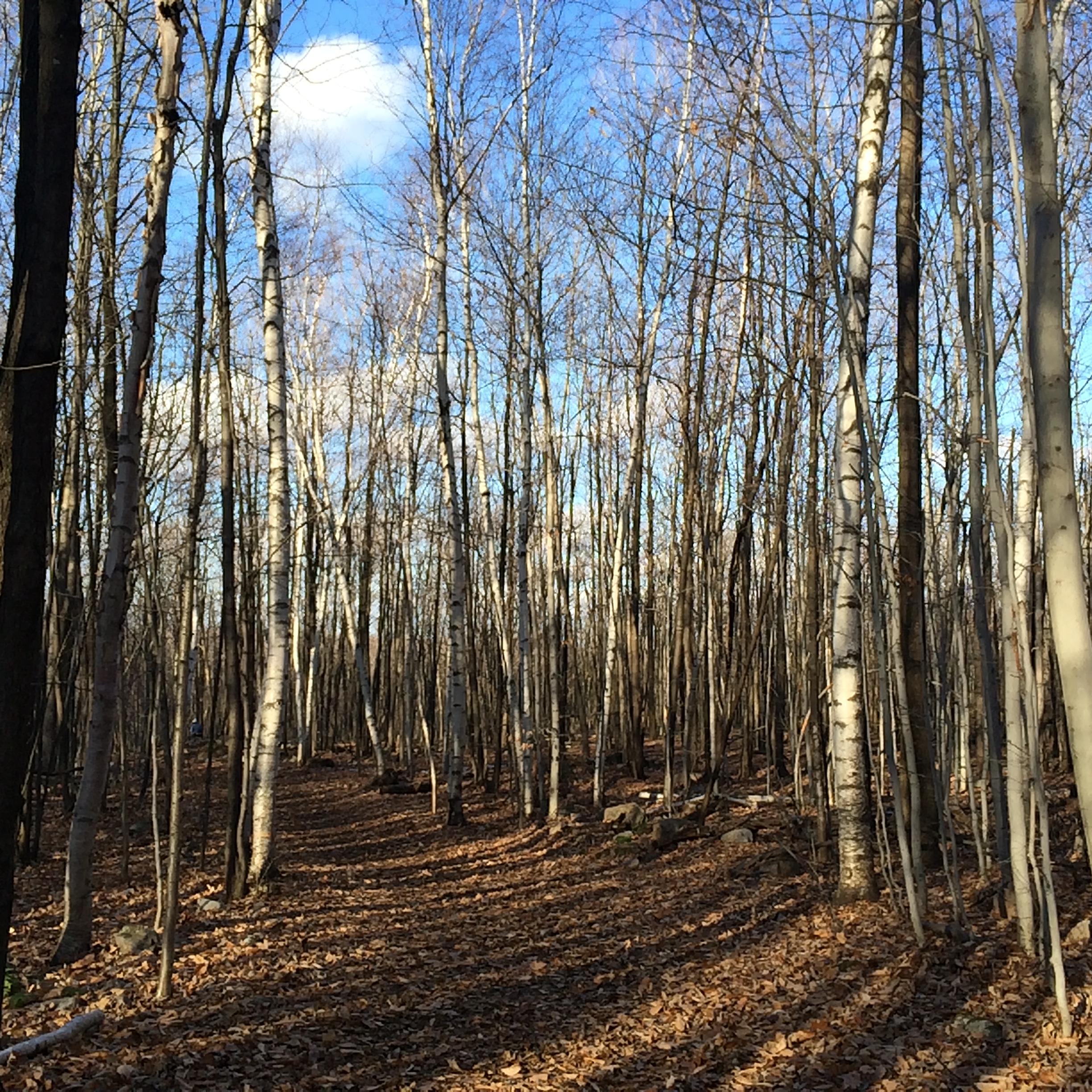 There were many white birches along the trail. It’s too warm in Rhode Island now to grow these trees reliably. People have switched to river birches here.