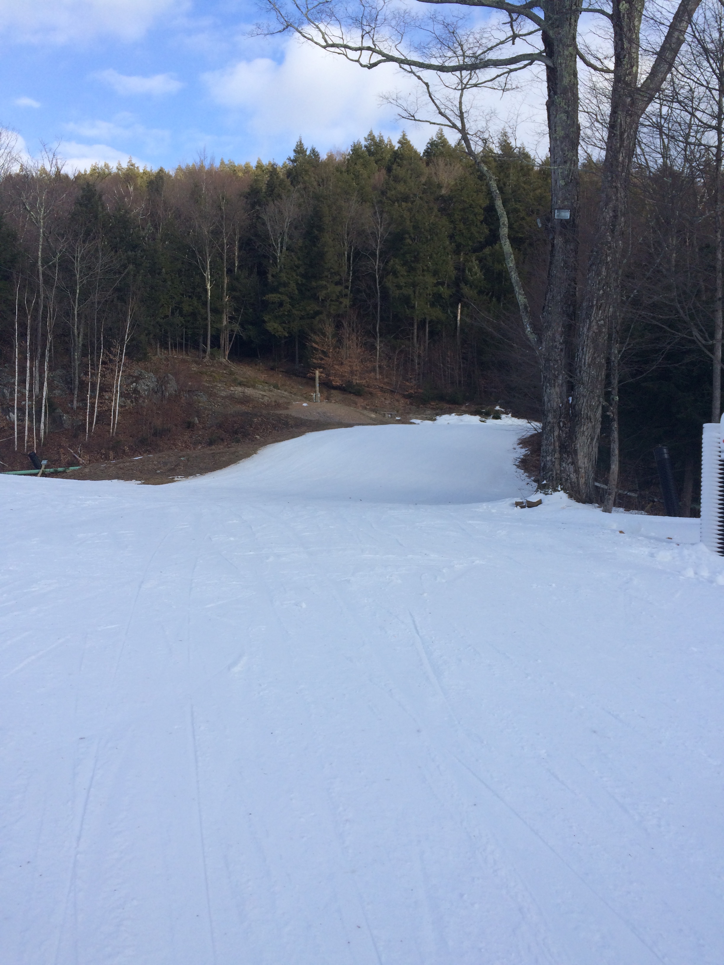 We have been skiing, but the snow is confined to the runs where they have been making it. The rest of the woods are brown. This is Berkshire East a week ago. We’re headed to Vermont with fingers crossed.