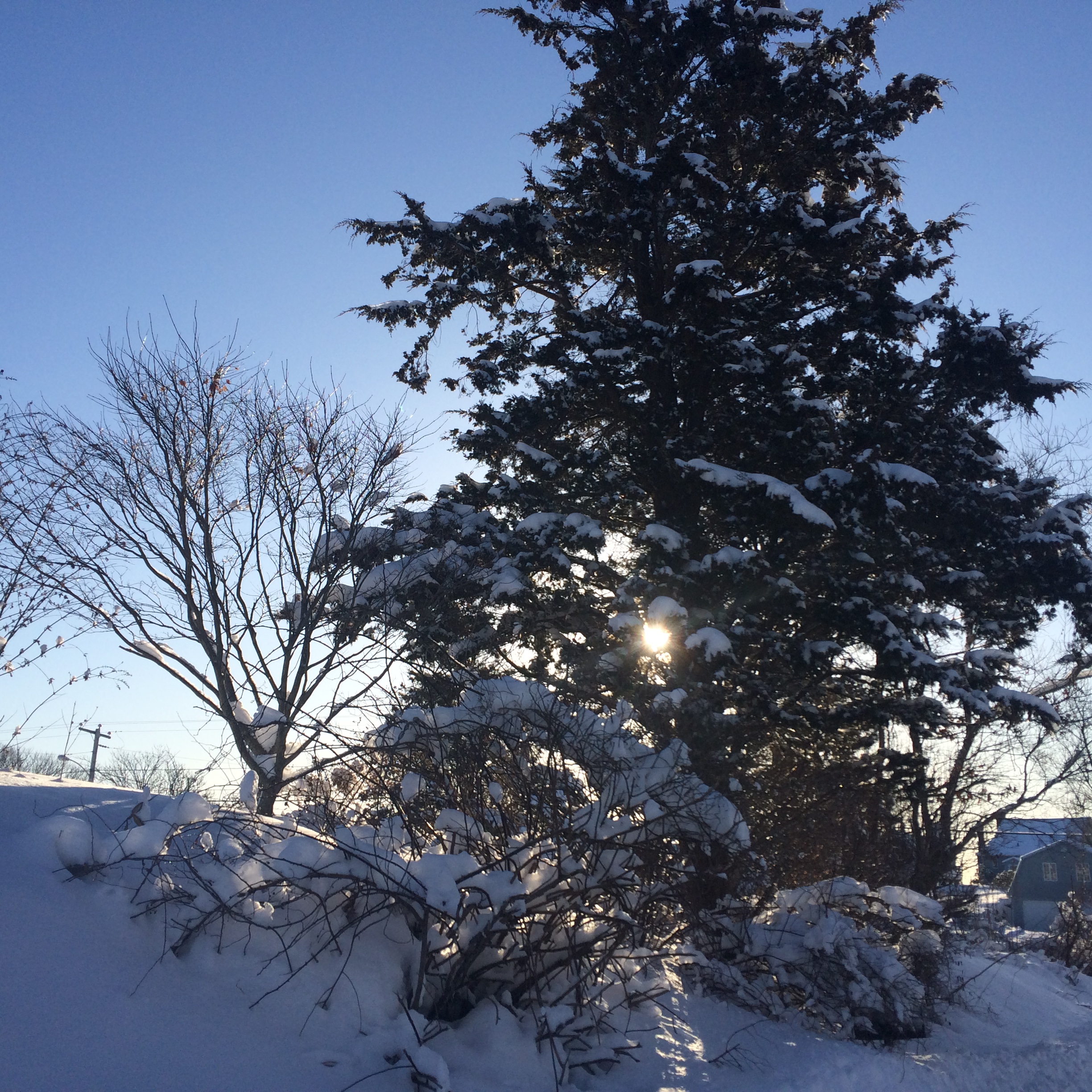 The above photo was taken the morning after the latest storm. Everything was clean and white and glowing in the early sun, as if it had all been given a fresh coat of paint.
