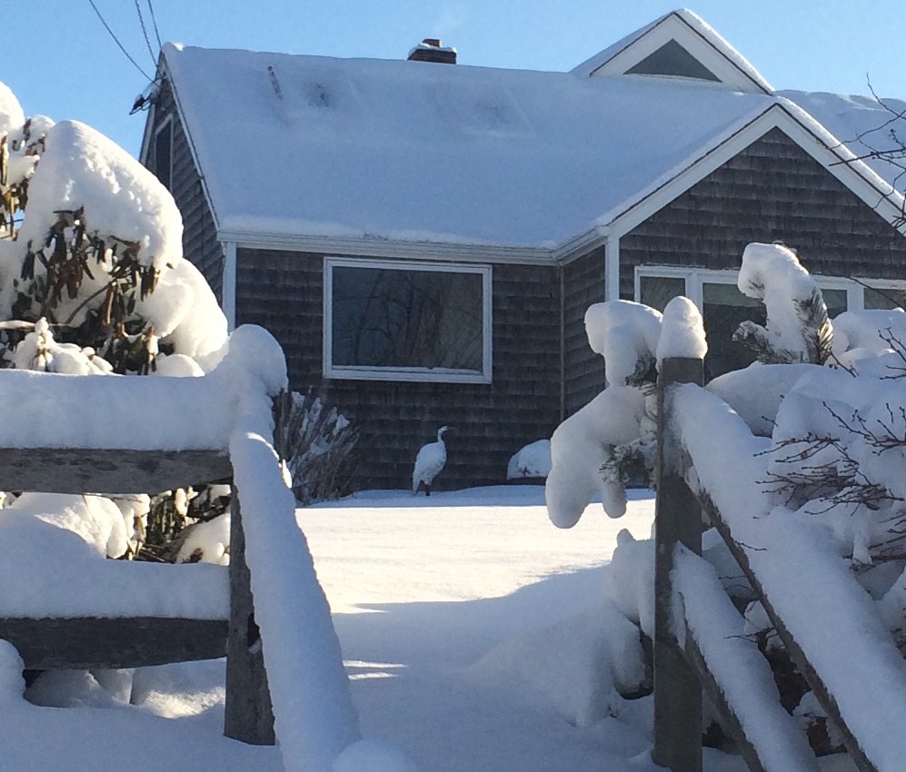 The egret ornament in my neighbor’s garden looked nice in the snow.