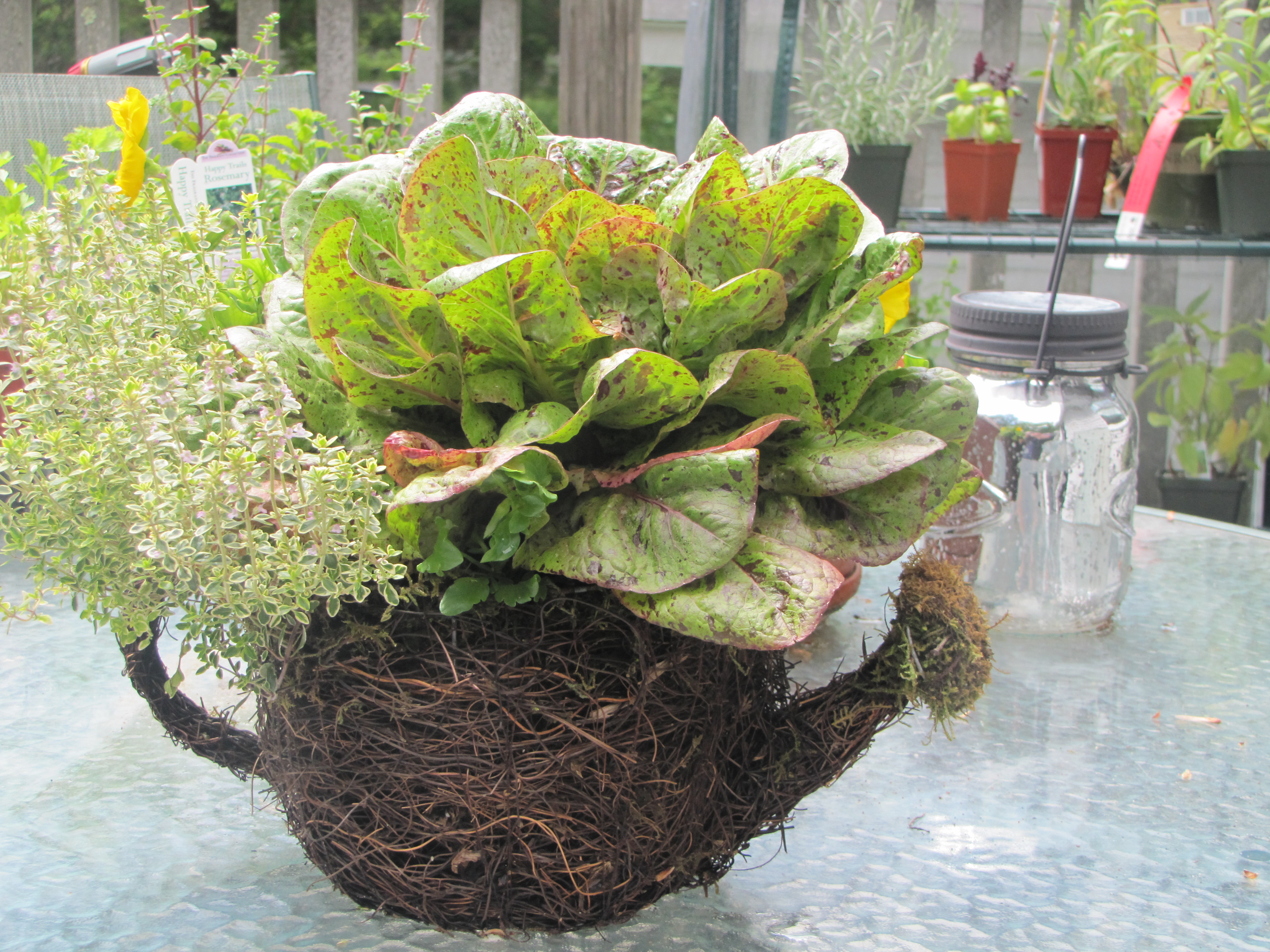 If you find a container like this one and wish to plant it, I’d add a soft plastic bag to the interior to hold the soil, so it will last more than one season. Maybe I tend to be pennywise, but these containers can be pricey, and will easily be destroyed if they get too wet!