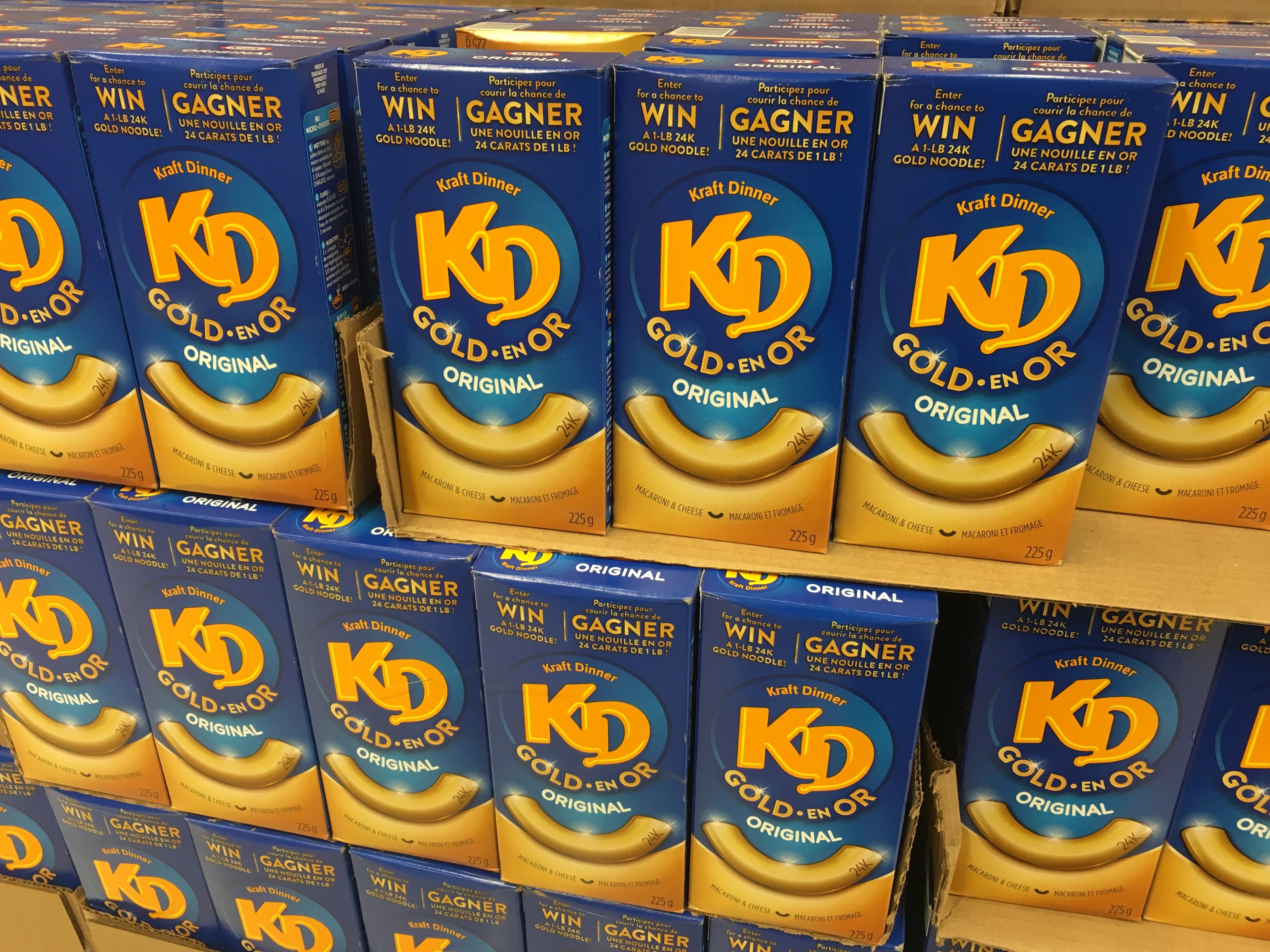 More nostalgia for me, when I saw a display of macaroni and cheese dinner at another grocery store. This stuff is hugely popular in Canada, and is simply referred to as “KD.” It was nice to see the packaging reflecting that national quirk.