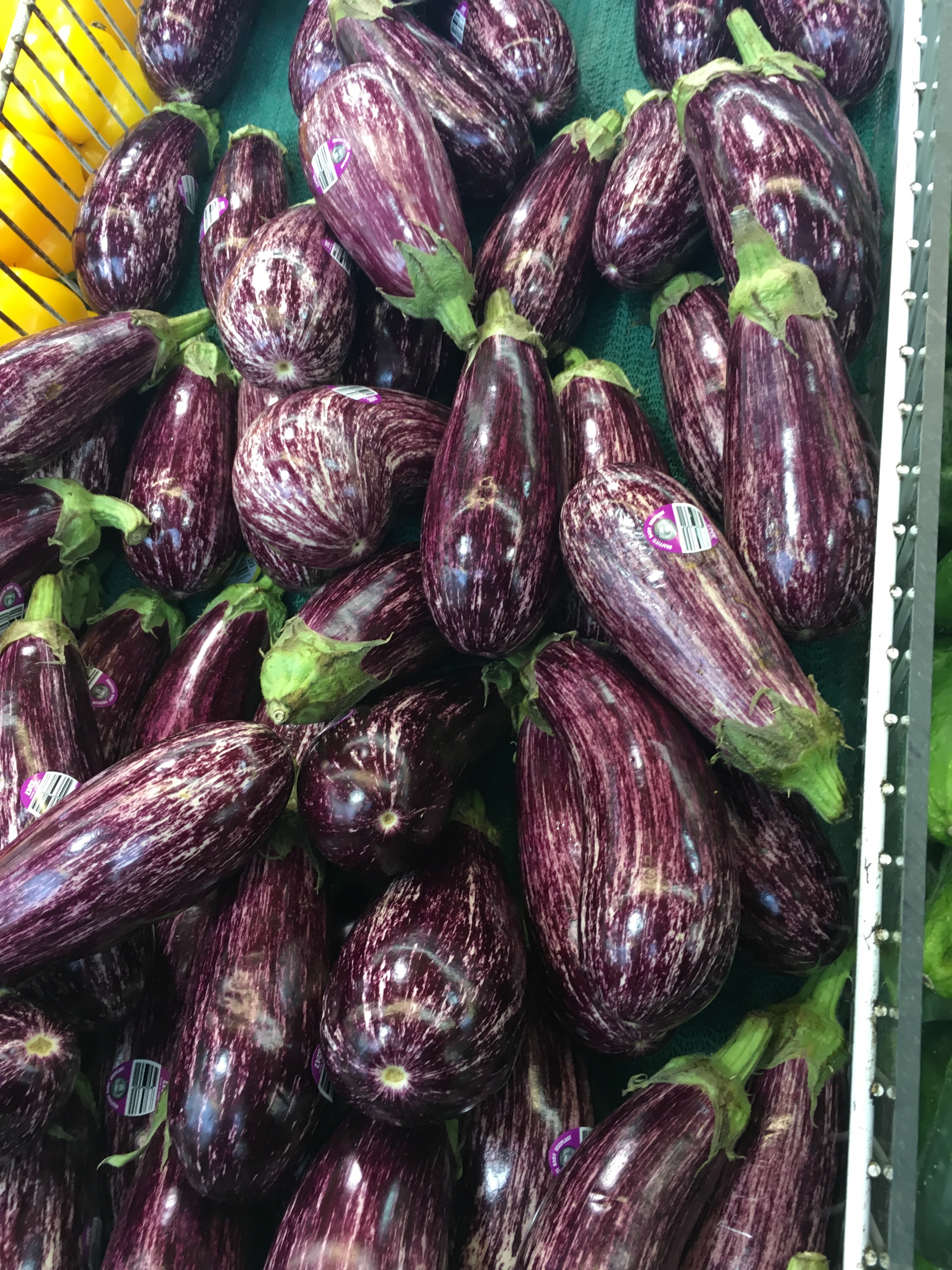 Feast your eyes on these beautiful eggplants, which I believe are the “graffiti” variety. Whatever they are, even in December they looked so pretty and fresh on display at the Adonis Middle Eastern market near Montreal. My husband, who was born in Rhode Island, fell in love with the place when we were dating and INSISTS we go there whenever we are in Quebec.