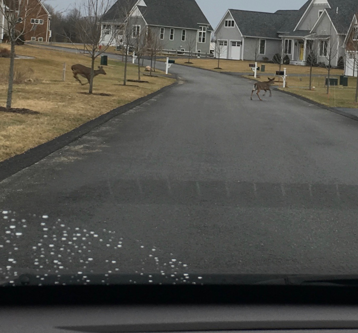 On my way to the class, I had to stop suddenly to avoid a small herd of deer. I followed them into an ugly new housing development to take a picture. This used to be a field, and they’re probably wondering where it went. I know I am.
