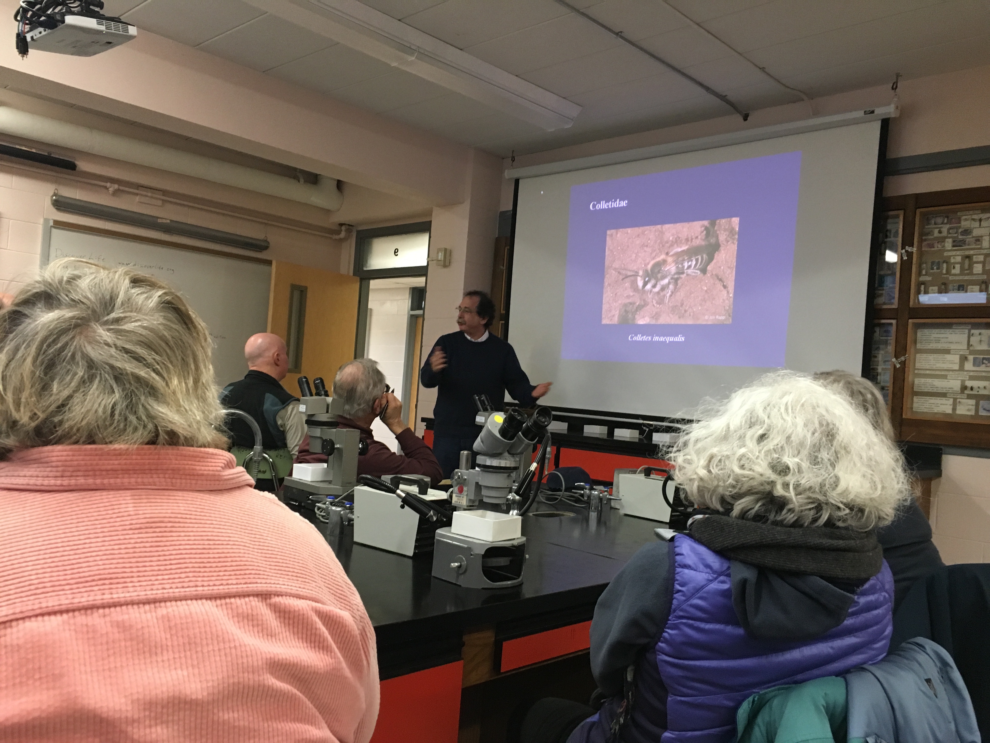 Dr. Howard Ginsberg, the instructor, ended the class by giving us an opportunity to examine different species of bees under a microscope. There are about 200 species in RI, and it looked like most of them were represented in the specimens. Of course, we did hear about the ongoing efforts to understand Colony Collapse Disorder. Frightening and depressing.