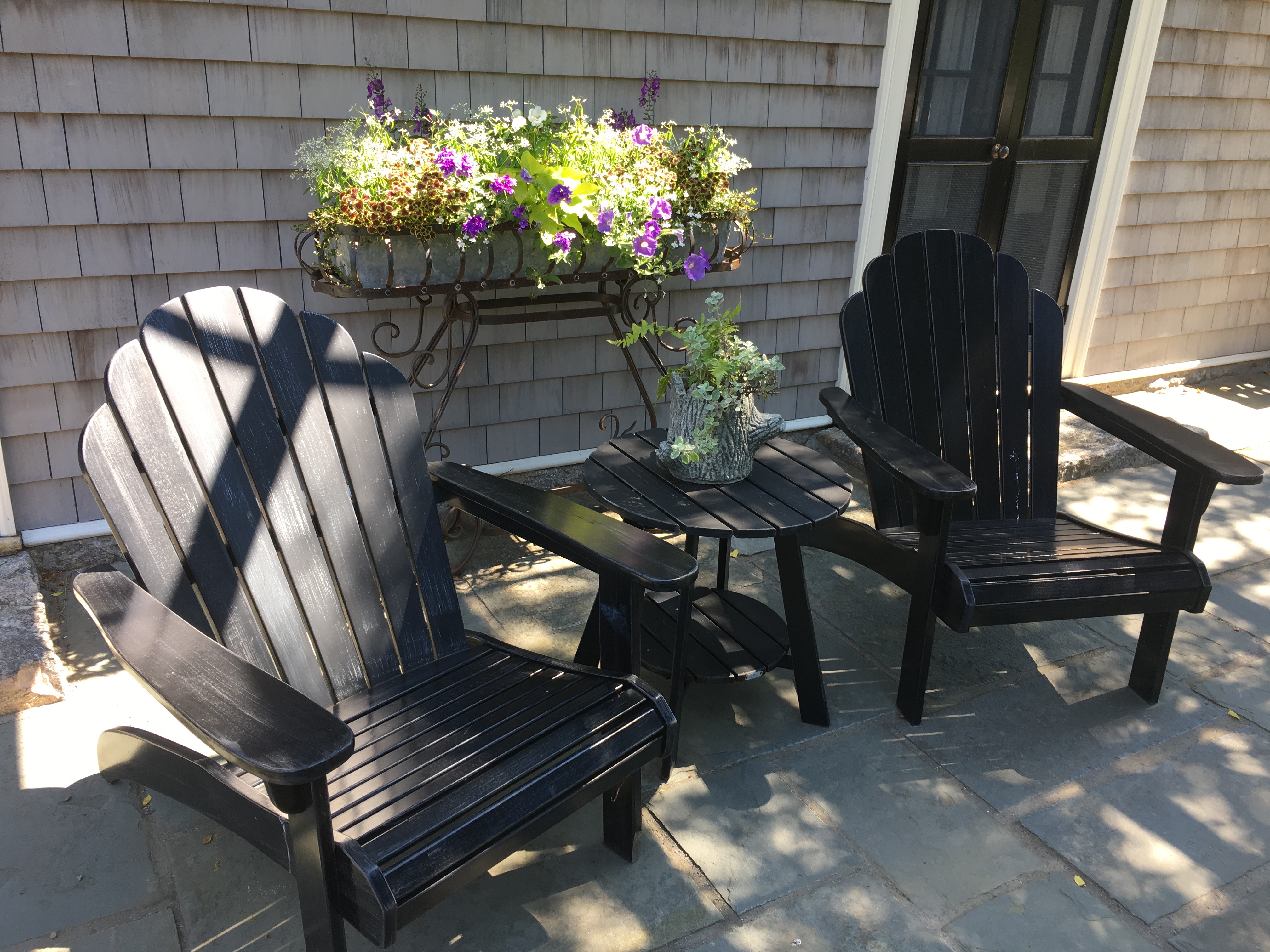 Finally, in a shady spot, an attractive window box brings some color to the otherwise gray and black palette.
