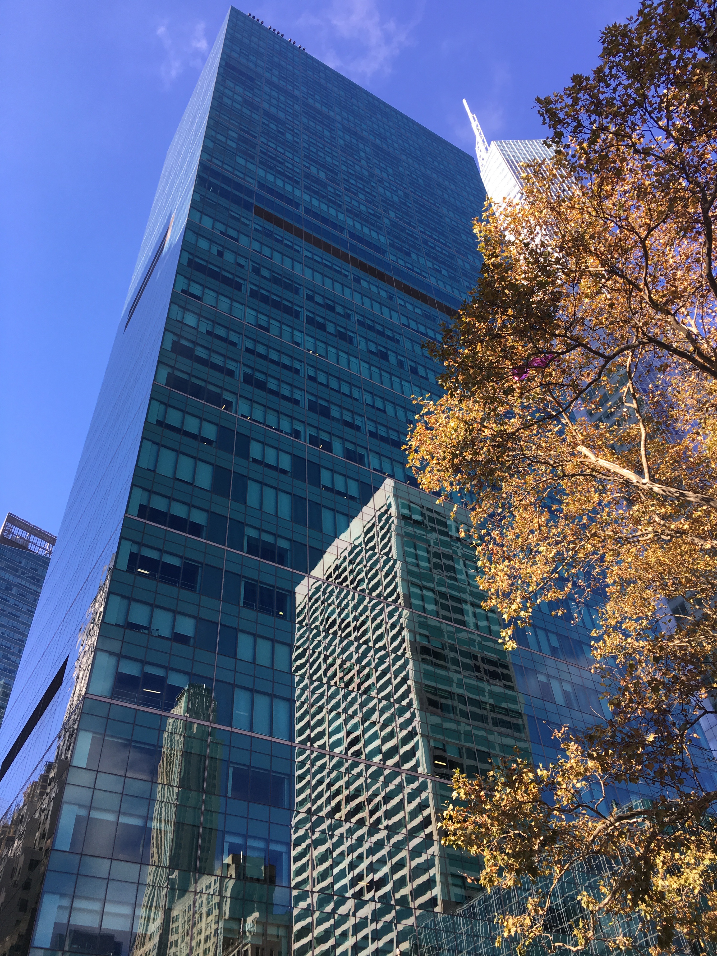 Notice how the building in the middle of the shot is actually a reflection in the mirrored surface of the larger building. I generally do not like reflective buildings because they kill so many birds, but in this case I was simply admiring the aesthetic.