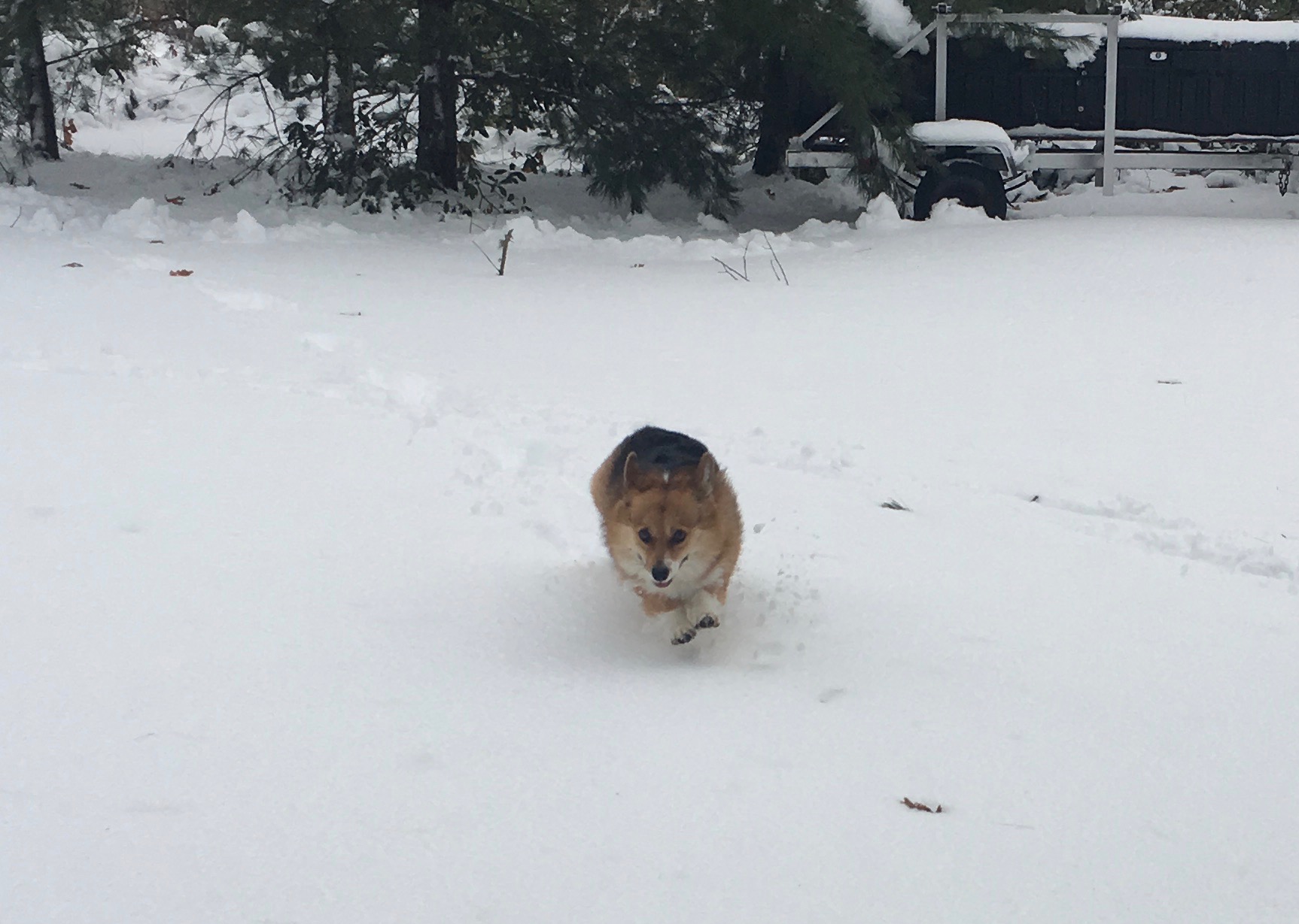 As I write this, we are having another weather “event” with snow and possibly freezing rain and even rain, and there’s another one coming tomorrow. That said, it’s winter, so I expect these storms. I like to go outside when it lets up a bit and take photos of our dog running around.