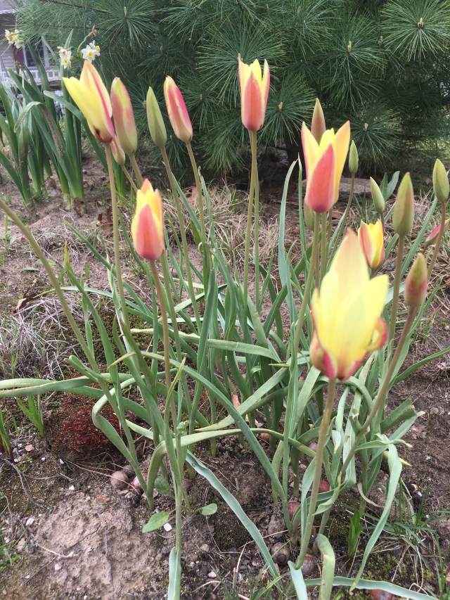 I discovered species tulips decades ago but I hadn’t planted any recently until last fall. This one is T. Clusiana Cynthia. It opened yesterday and I am very pleased. Species tulips are the tough old tulips that grow wild in the Mediterranean and Turkey. Unlike the modern hybrids we see most often today that are at their best the first year and wimp out in subsequent springs, these get better with time and even naturalize.