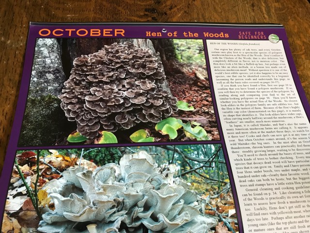 Each month features gorgeous photos of a particular species, a calendar and a detailed description of the mushroom. Here is October’s mushroom of the month: Hen of the woods.