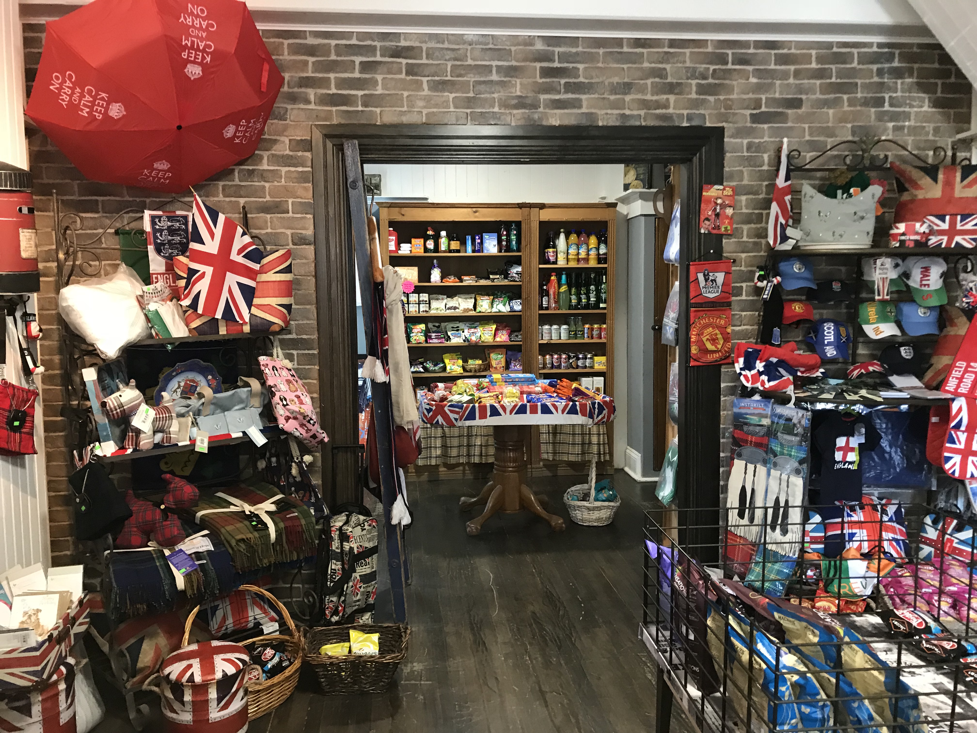 Craving old-fashioned English toffees? Got’em. Scones you can bake at home? Yup. And proper English cheddar? Yes! This store has tons of English cookies and candies and tea and other foods, in addition to a large selection of souvenirs. I was told that their royal wedding party was a real blow-out.