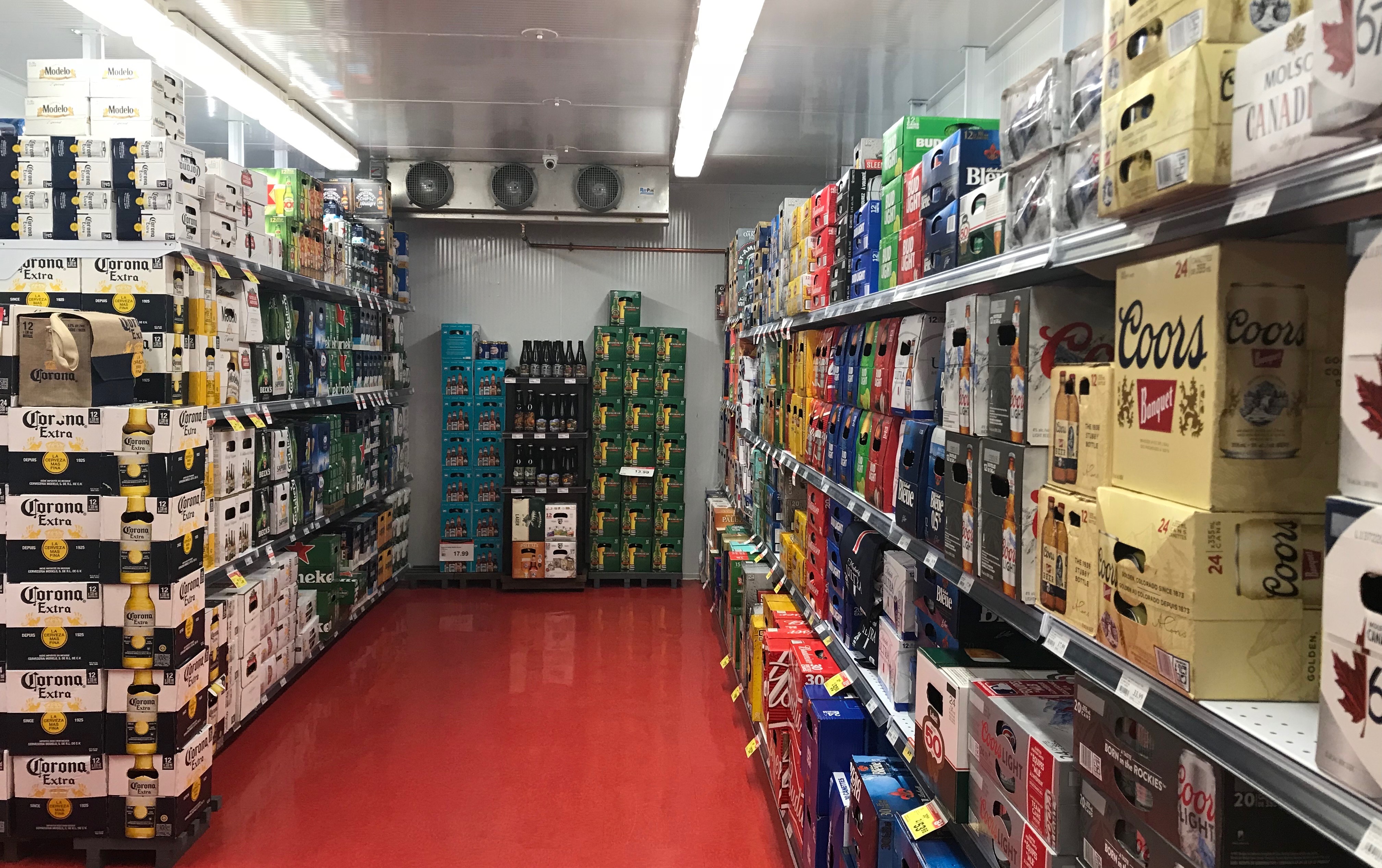 My sister needed to buy beer (she plays hockey so naturally that’s her beverage of choice) and we stopped at the local supermarket, which, like every other supermarket and convenience store (they’re called depanneurs in Quebec) has a giant walk-in beer fridge.