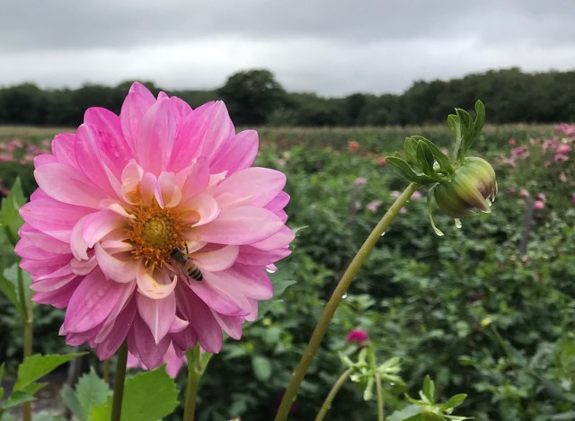 My favorite nursery has an impressive field of dahlias behind the greenhouse. They sell cut flowers and they also offer a cut-your-own option. It was interesting to see which flowers attracted pollinators. The pink dahlia in the above photo was covered in honey bees, while many others didn’t have a single one.