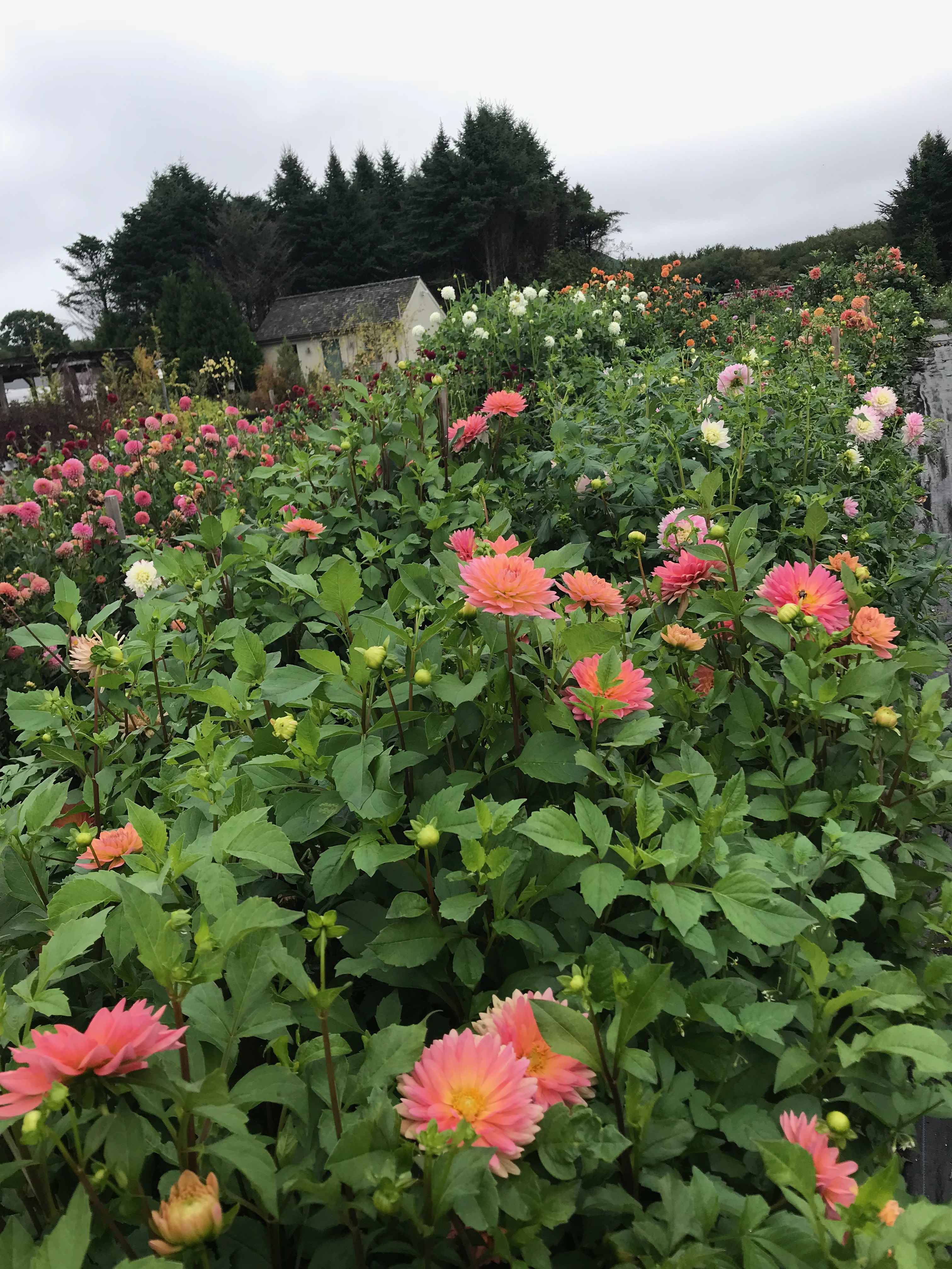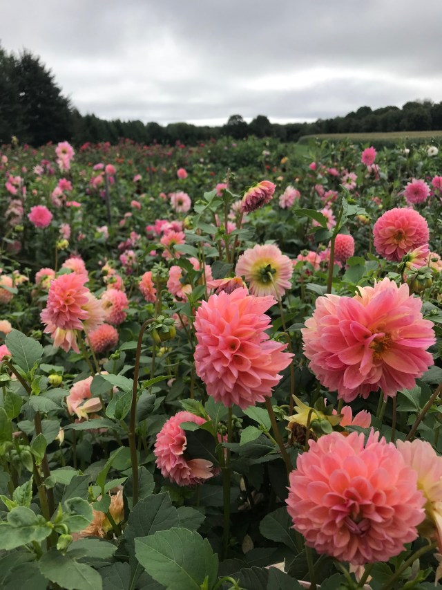 Despite the grayness of the sky, the blooms lit up the space. I was alone with thousands of dahlias, exclaiming to no one about how striking they were. I do not grow these plants, because I have never been able to store the tubers over the winter. They always seemed to rot no matter how dry the storage area, so I gave up.