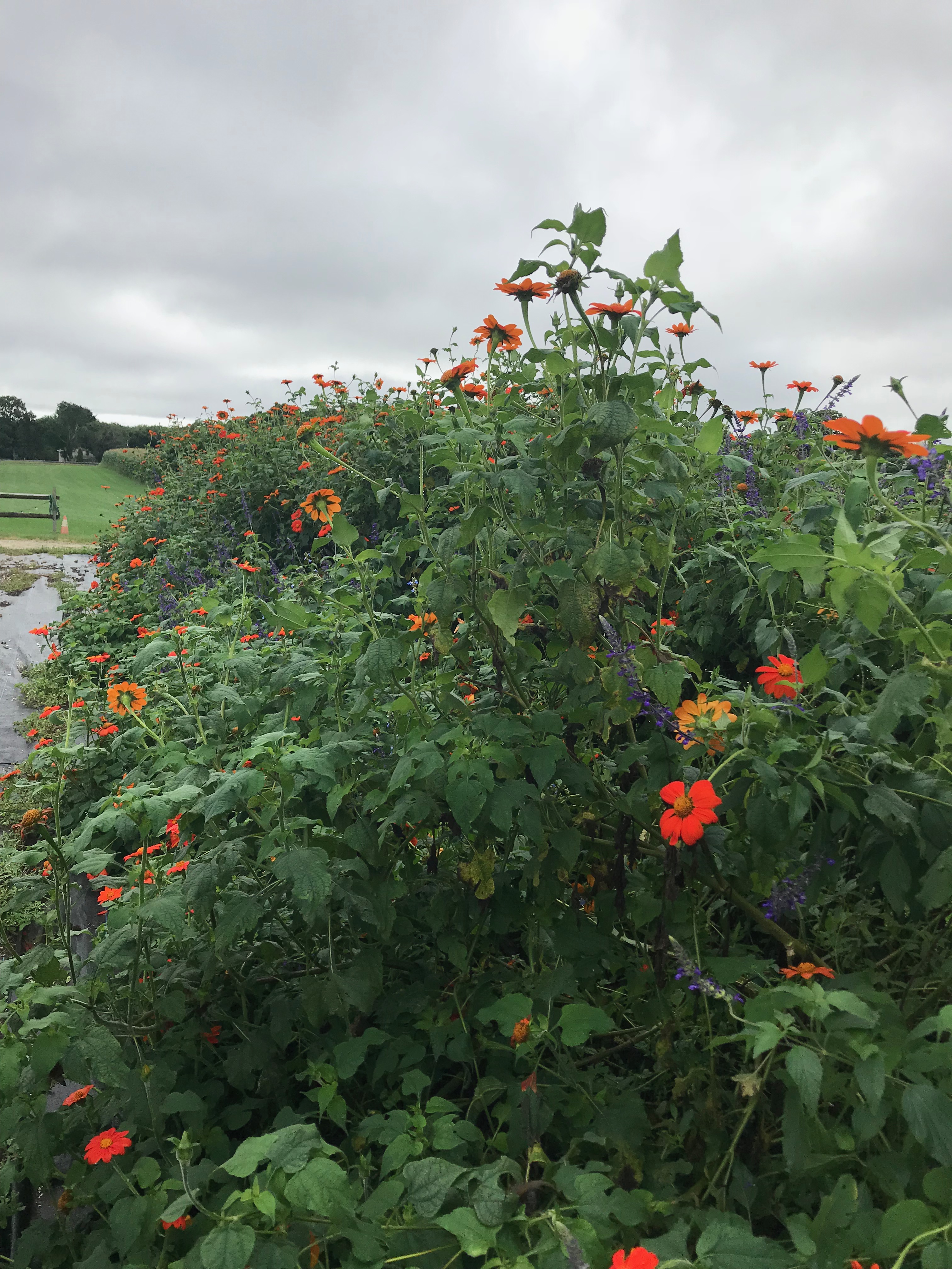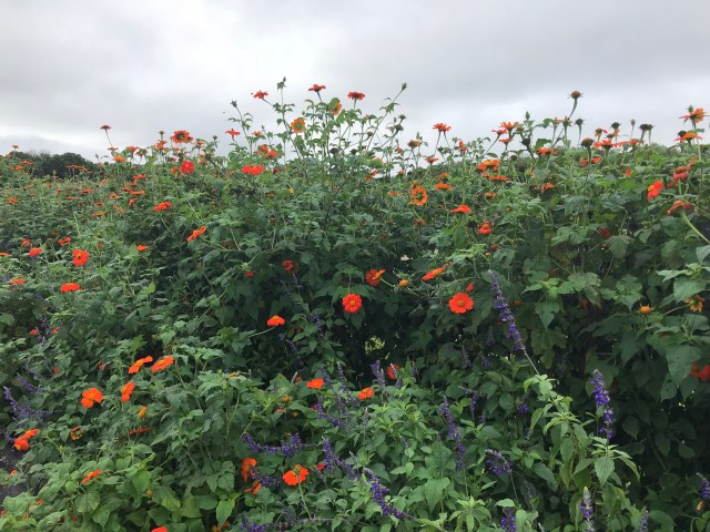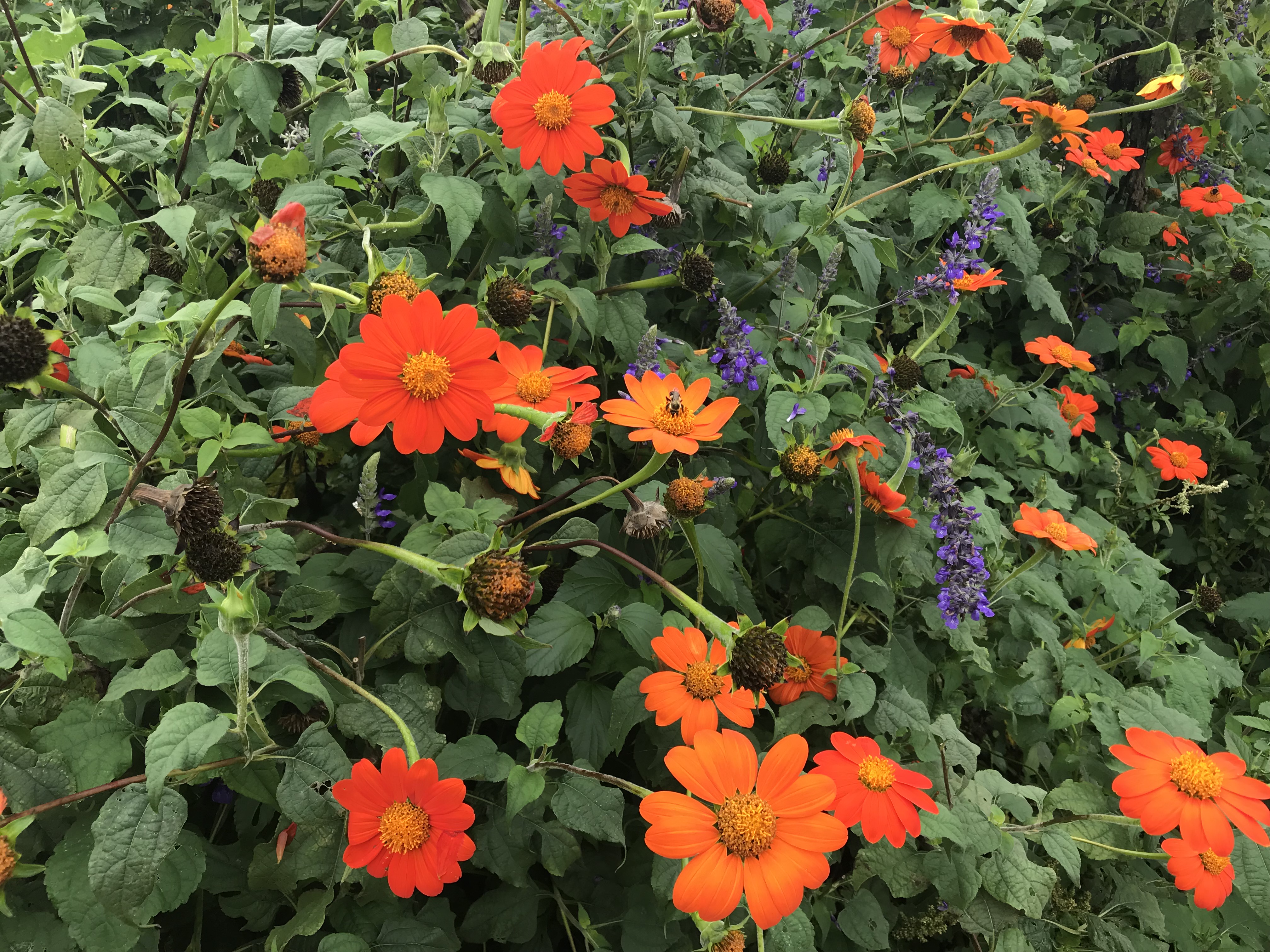 Another view of this terrific plant, grown in a big, fiery mass. The pure orange also adds drama and impact to cut – flower bouquets. A packet of seeds costs less than $5, so major bang for your buck. More information is available here: http://www.johnnyseeds.com/flowers/tithonia-mexican-sunflower/torch-tithonia-seed-1320.html?cgid=tithonia#start=1
